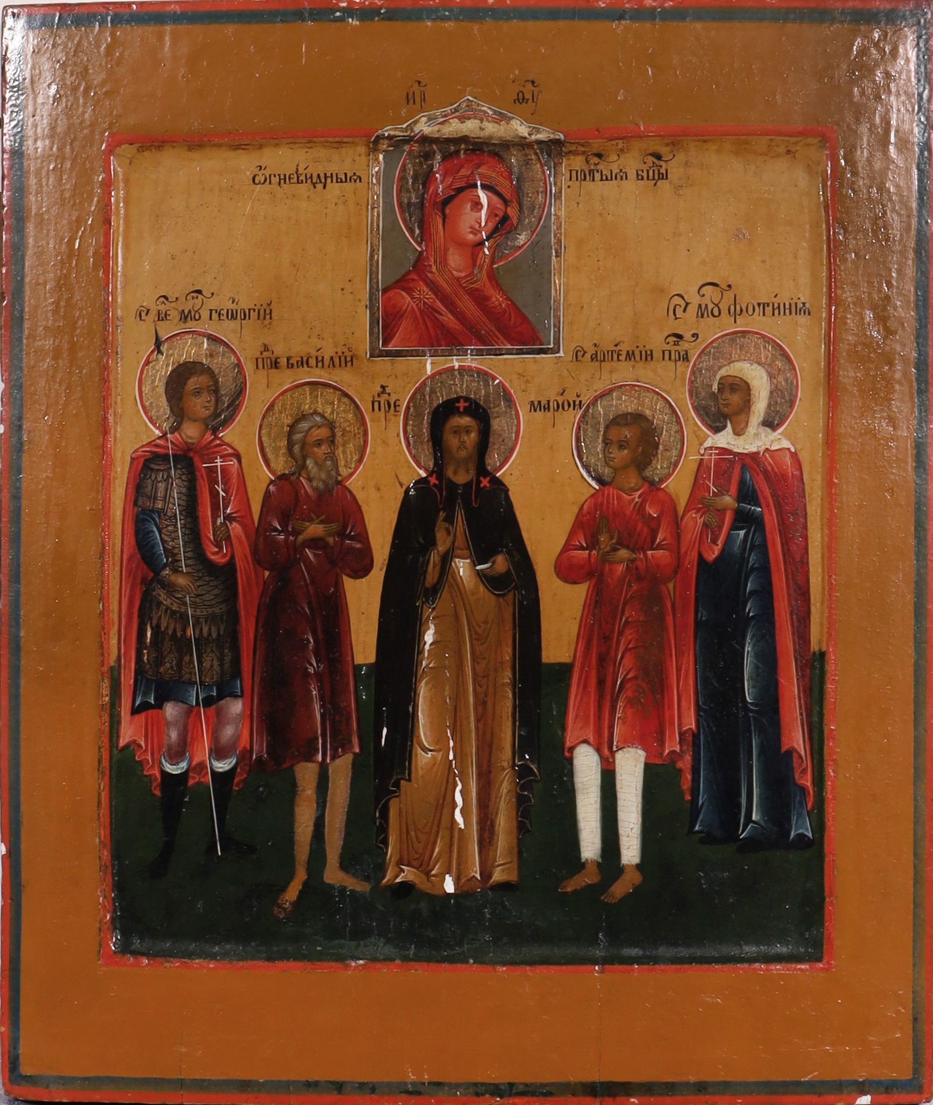 raffigurante Cristo Benedicente tra quattro santi con al centro il viso della Vergine [..]