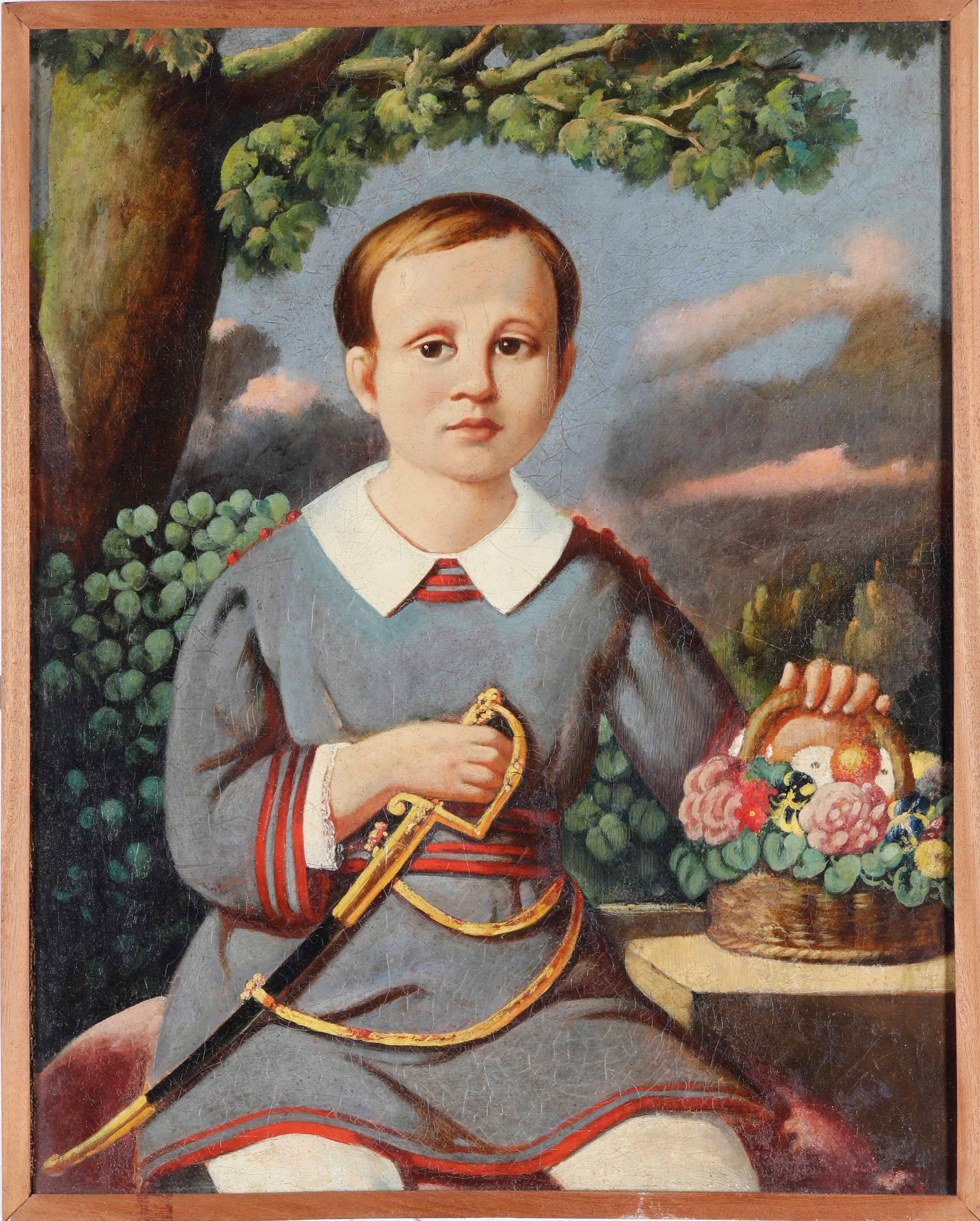 Anonimo del XIX secolo Ritratto di fanciullo in un paesaggio
