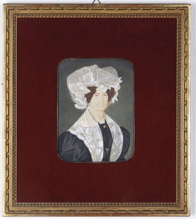 Anonimo XIX secolo Ritratto di dama con cuffia