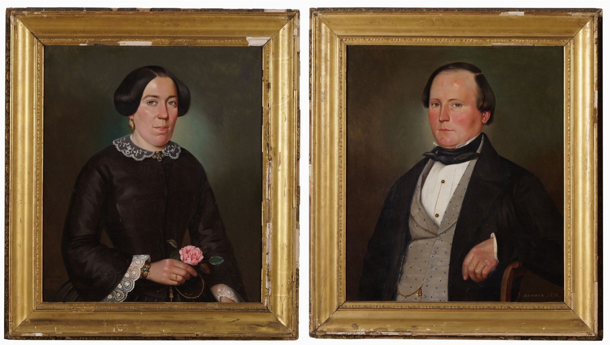coppia di dipinti ad olio su tela, cm 68,5X58