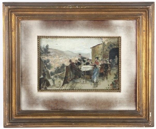 Bozzetto con scena di terrazza. Scuola toscana, XIX-XX secolo