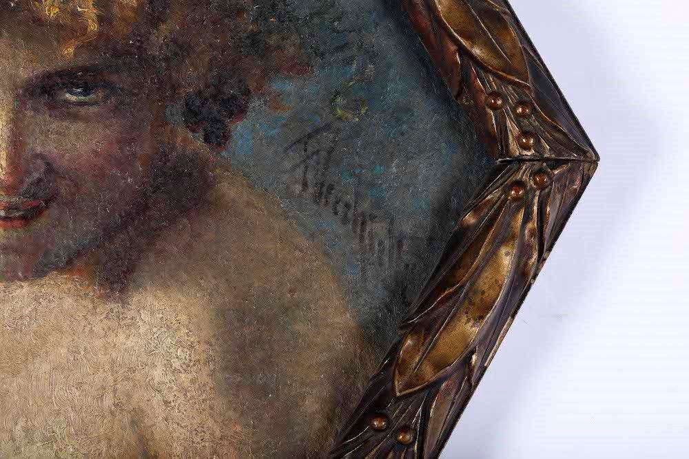 olio su cartoncino esagonale, Largh. 23 - Alt. 23 Cm