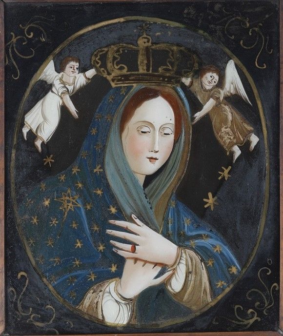 Dipinto sottovetro con Vergine incoronata. Ex Voto. Italia meridionale, XIX seco [..]