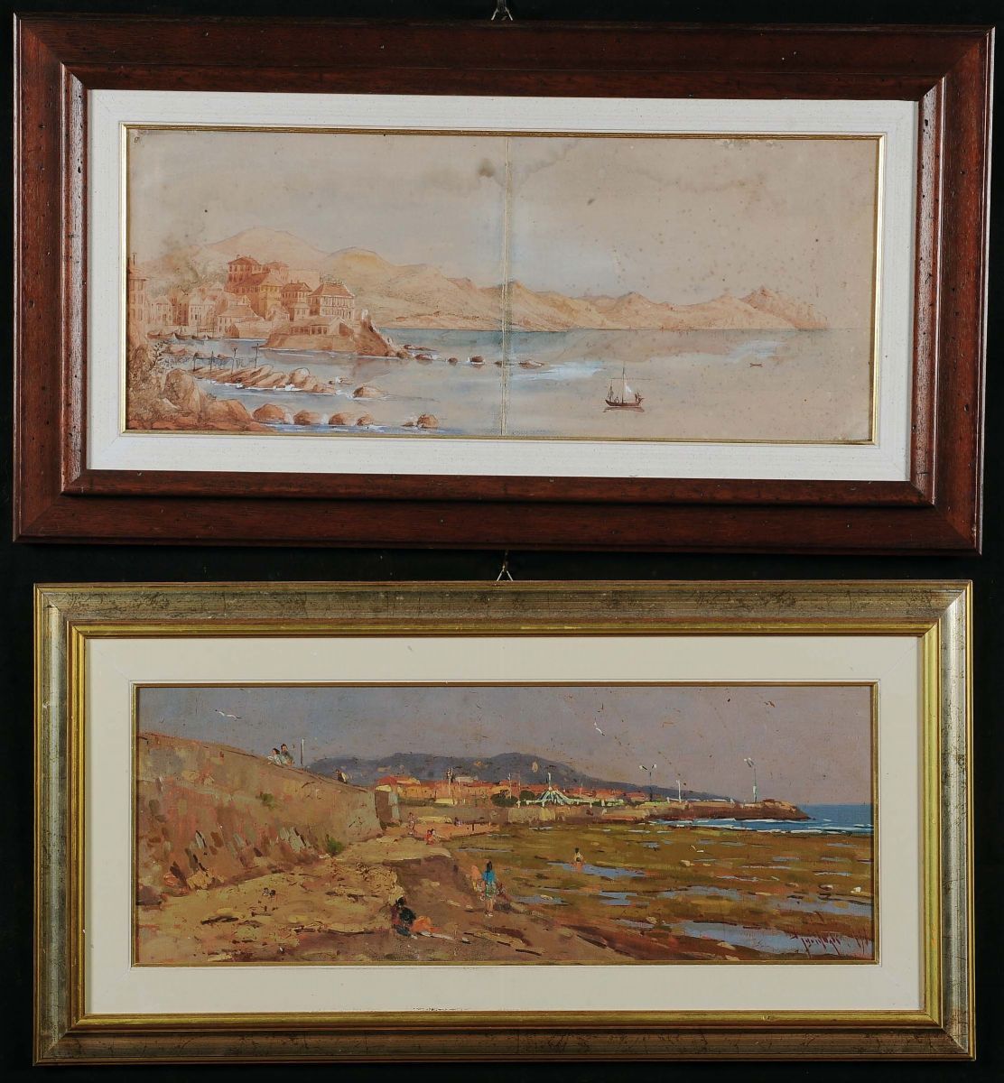 Due dipinti orizzontali con vedute costiere