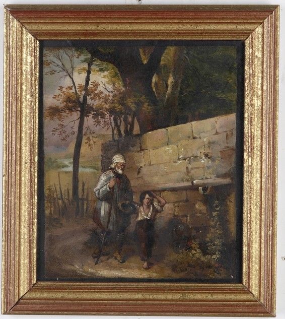 Pittore del XIX secolo Viandanti in paesaggio campestre