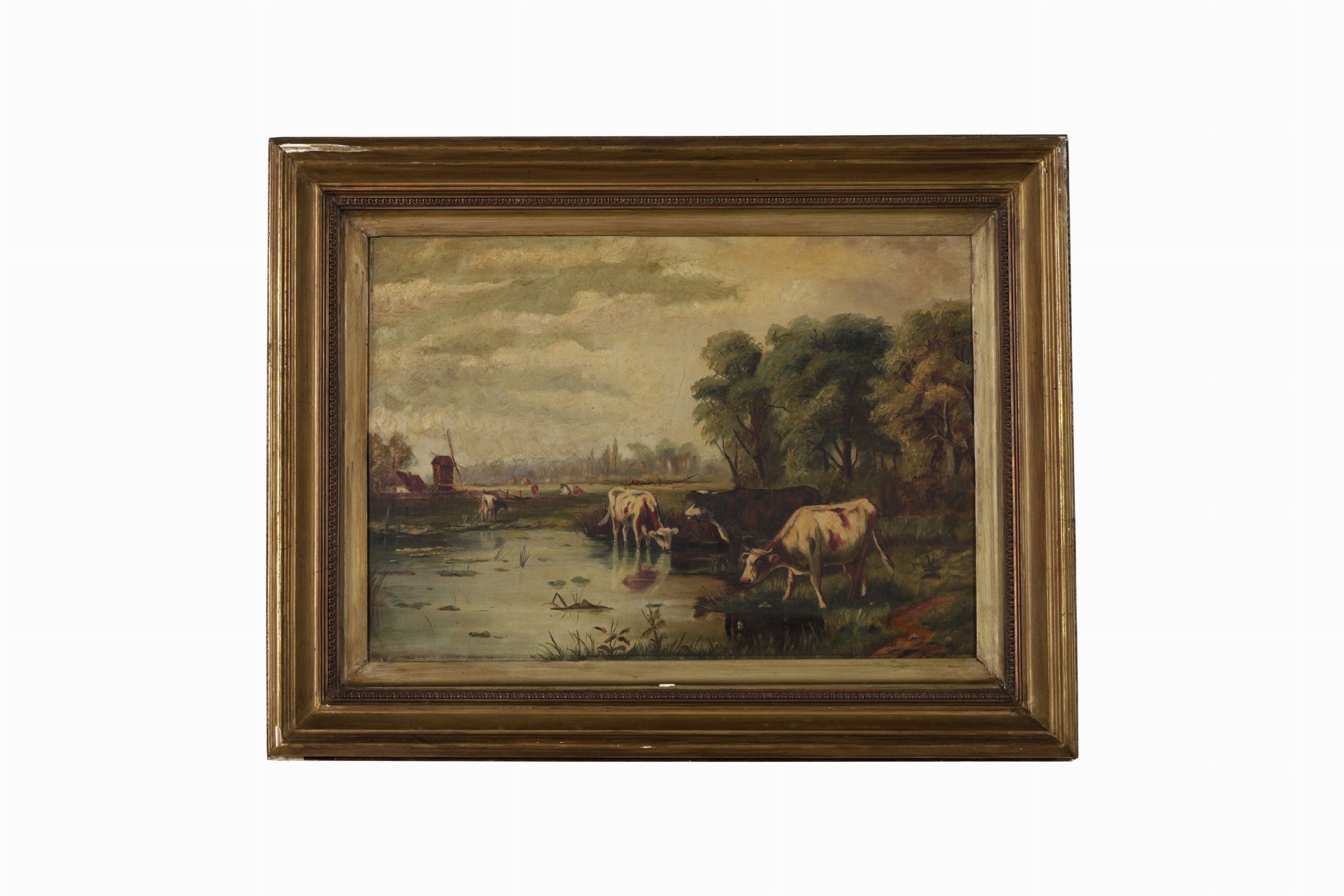 Pittore del XIX-XX secolo Coppia di paesaggi con mucche al pascolo