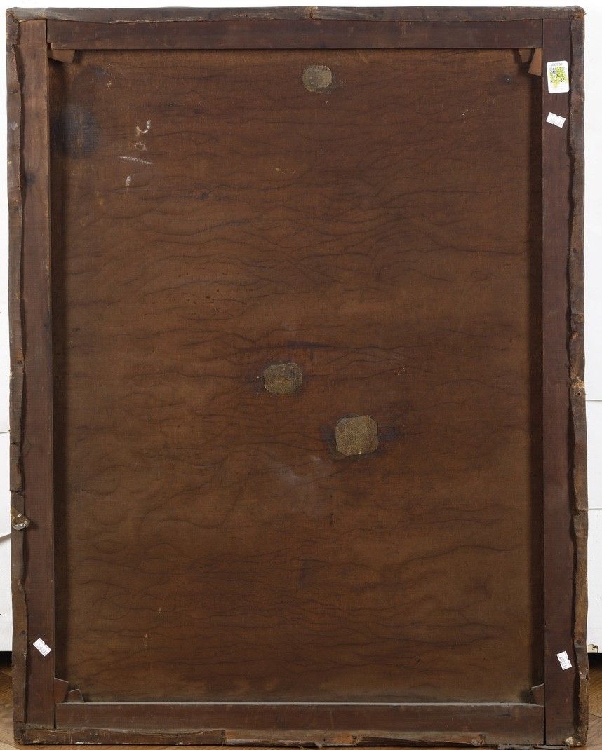 Scuola del XIX secolo Paesaggio fluviale con ponte e contadini