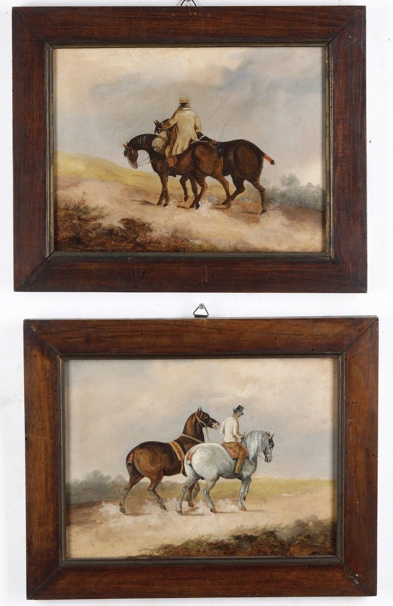 Scuola inglese, XIX secolo Paesaggi con cavalli e cavalieri