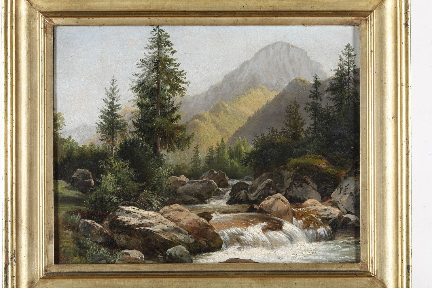 Scuola piemontese del XIX secolo Paesaggio montano con torrente a destra