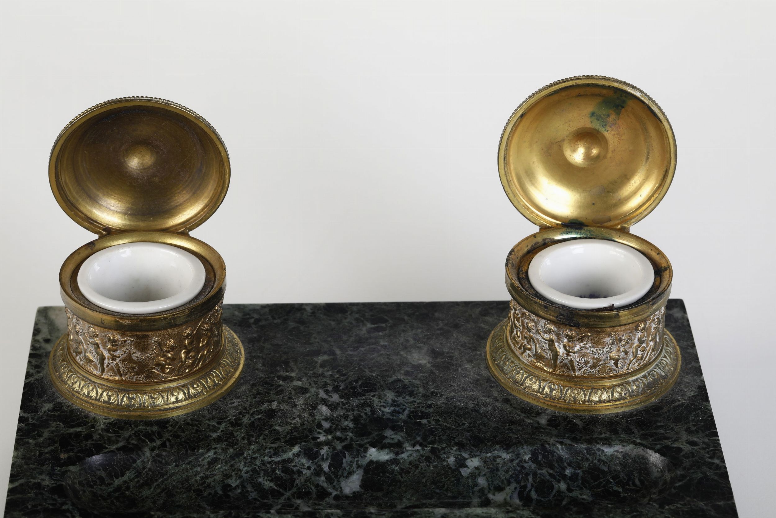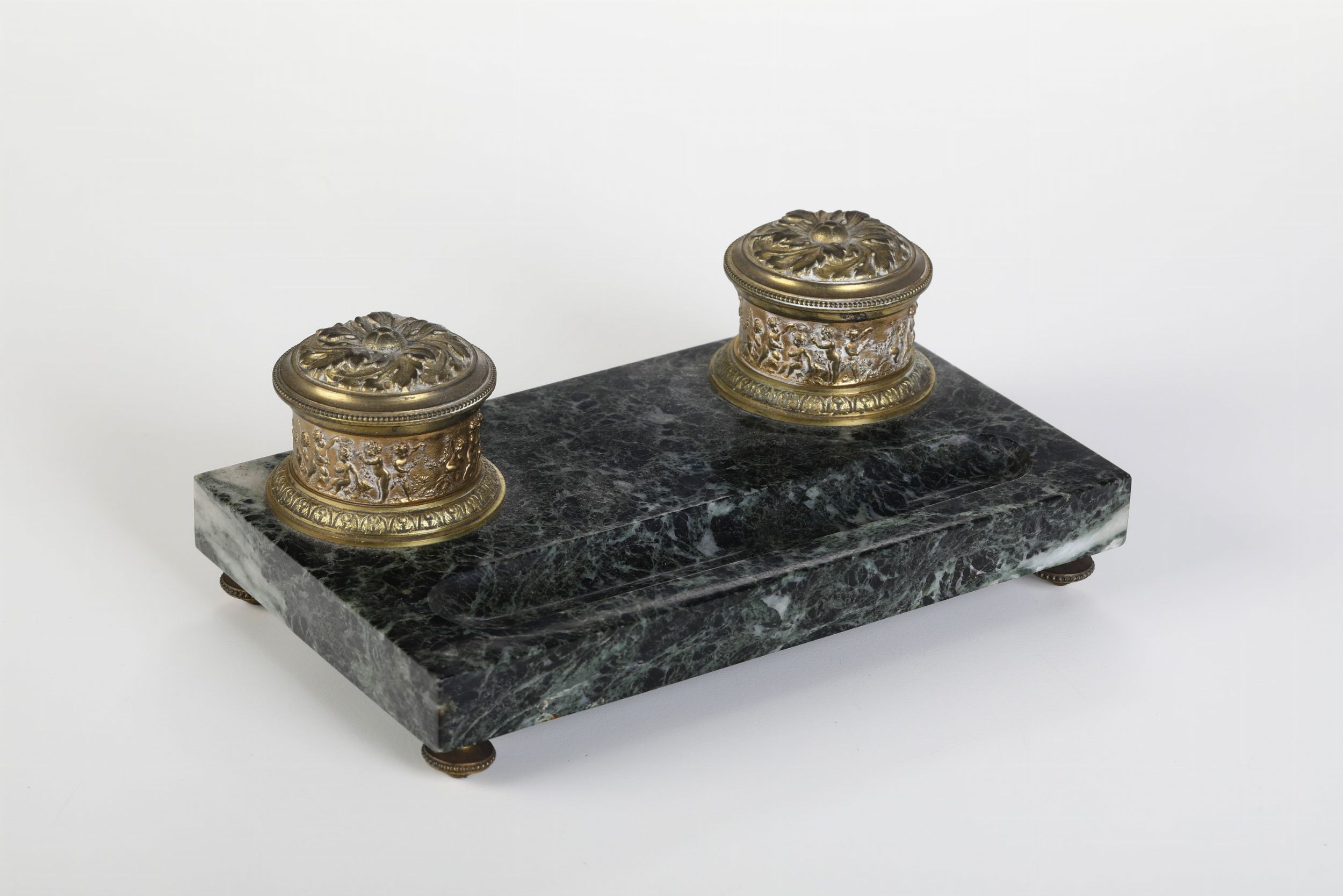 Calamaio in bronzo dorato e marmo. XIX-XX secolo