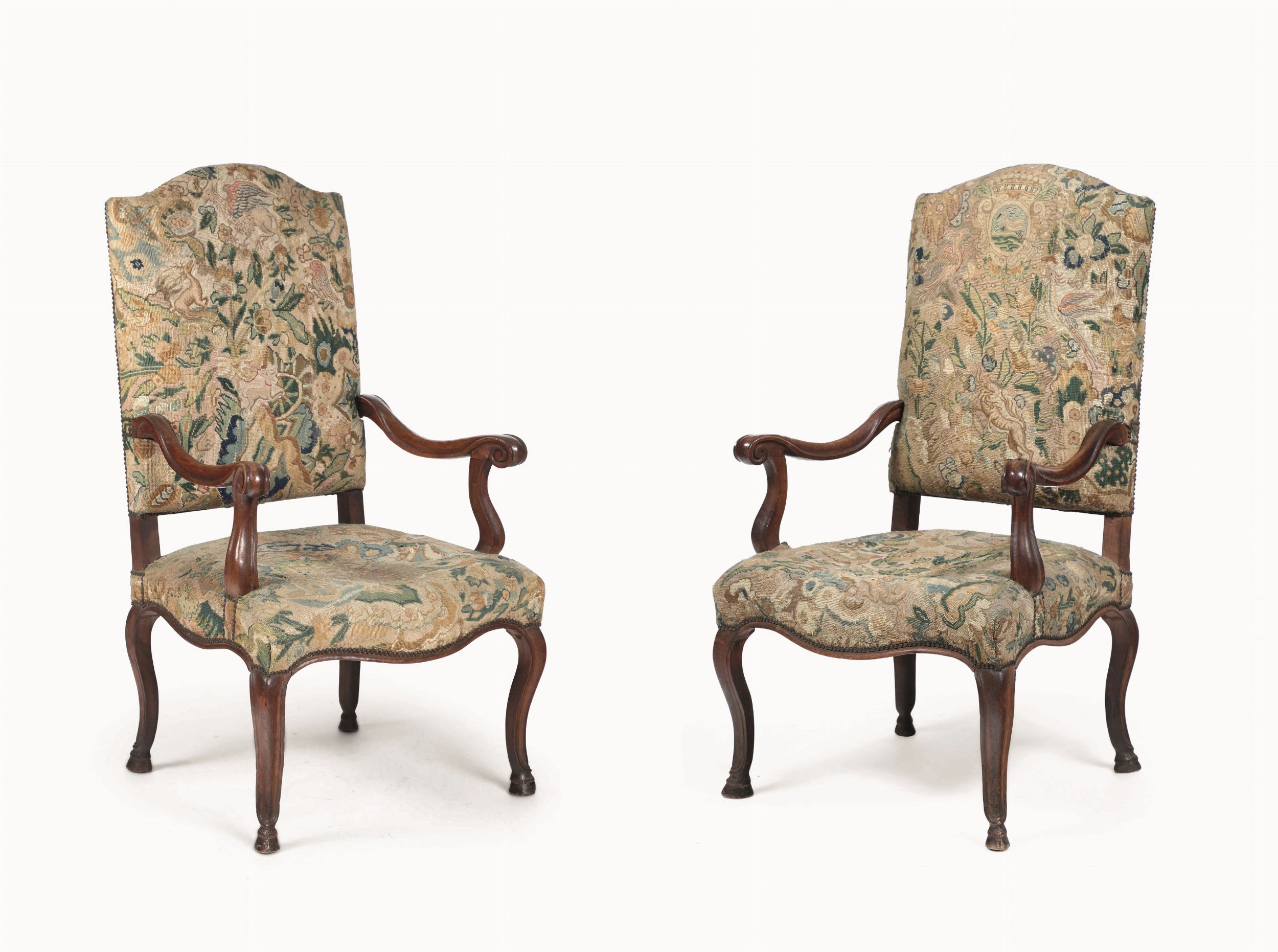 Coppia di poltrone in legno intagliato. XVIII secolo