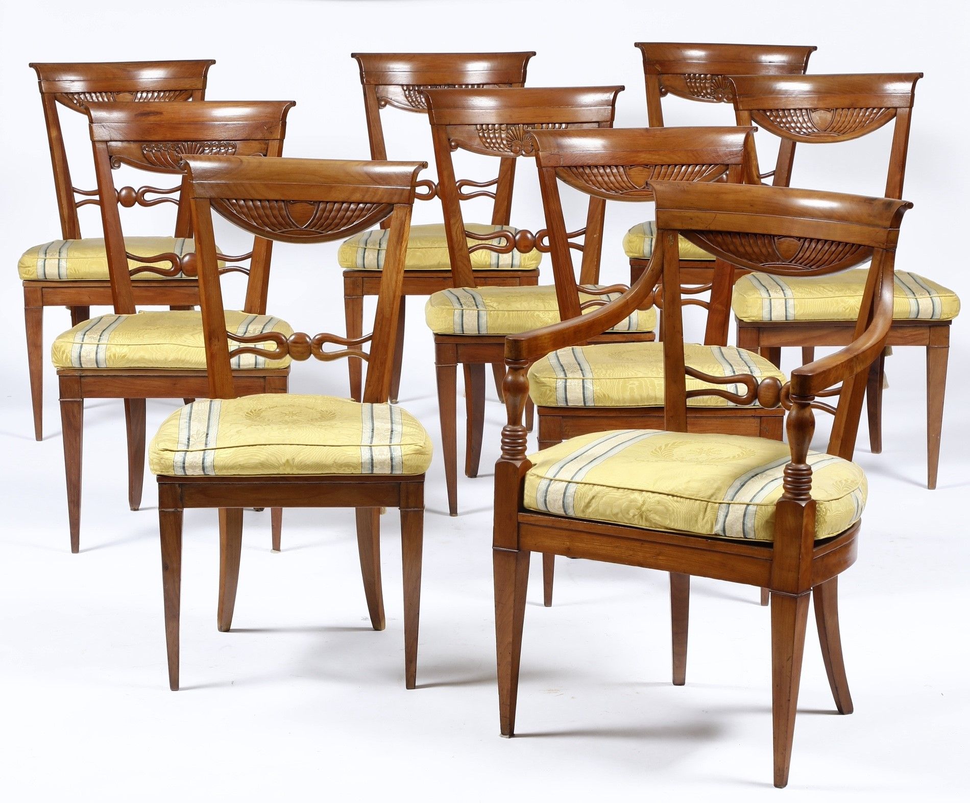 Divano e 8 sedie in legno intagliato. XVIII-XIX secolo