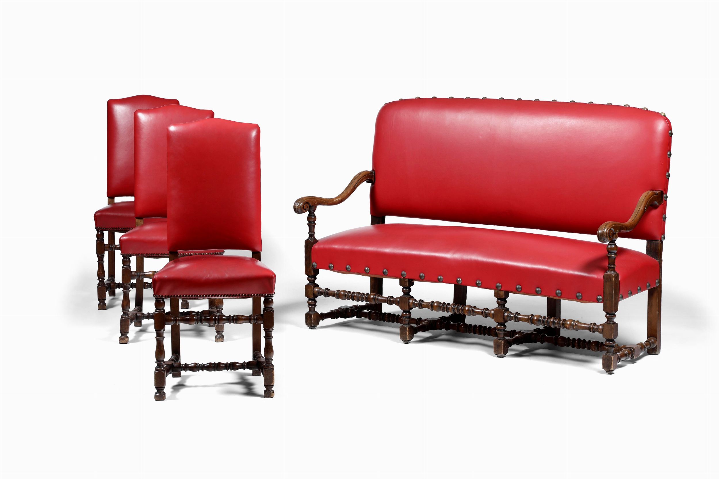 Divano e tre sedie a rocchetto. XVIII-XIX secolo