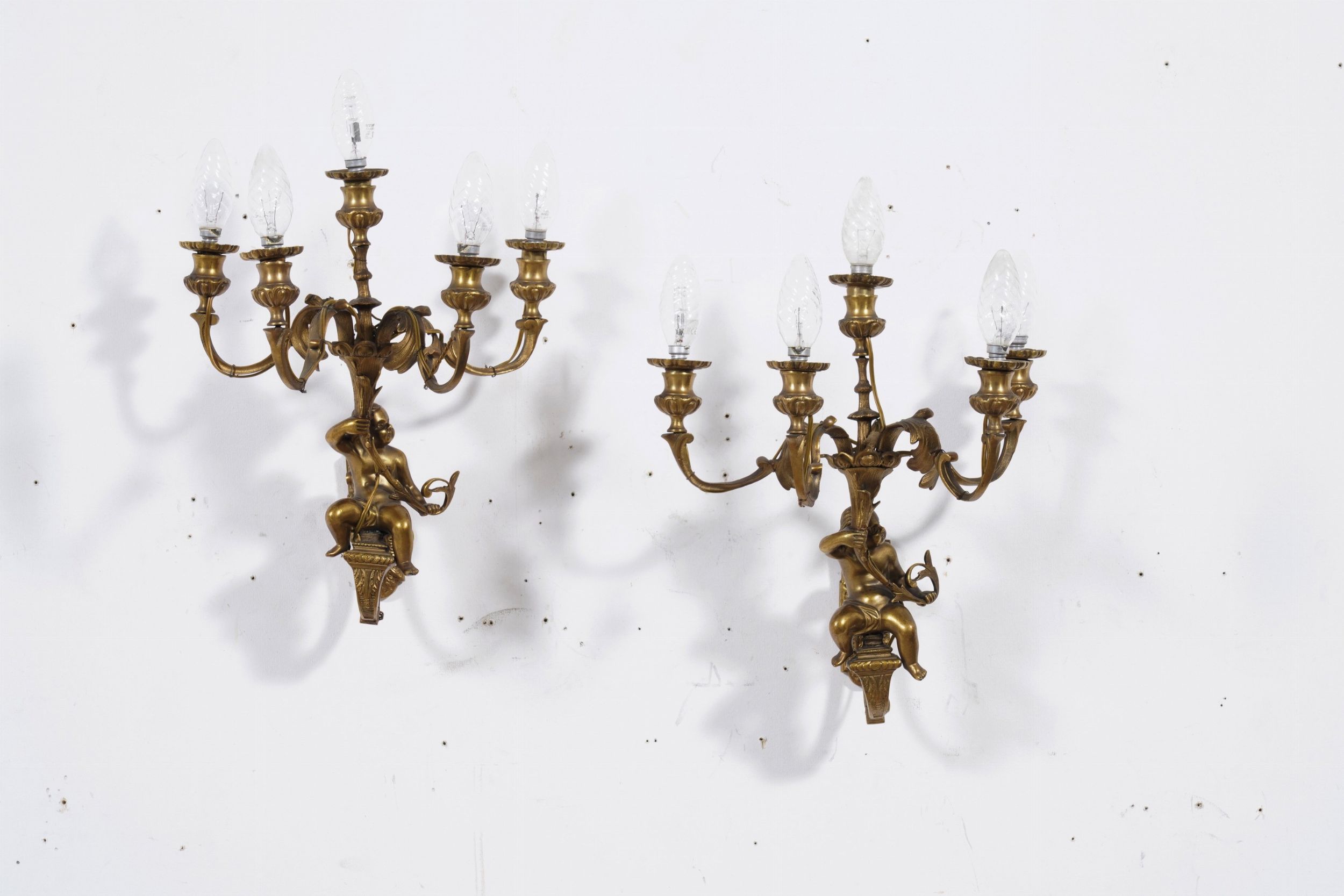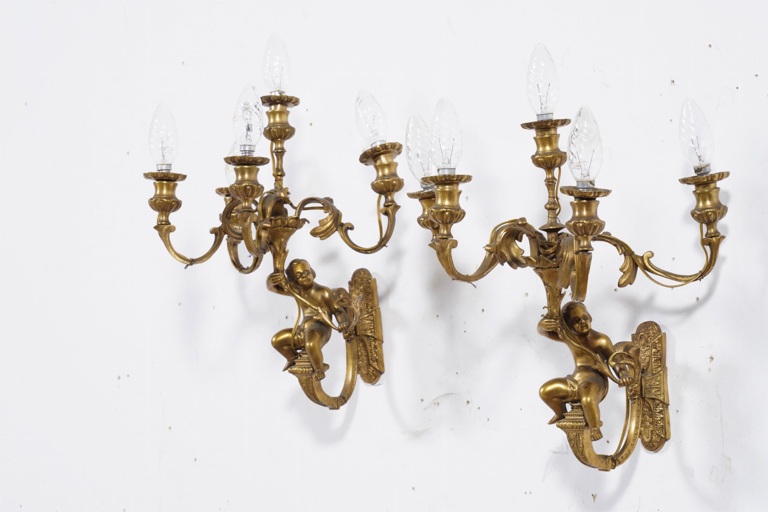 Gruppo di applique a 5 luci in bronzo dorato. XIX secolo
