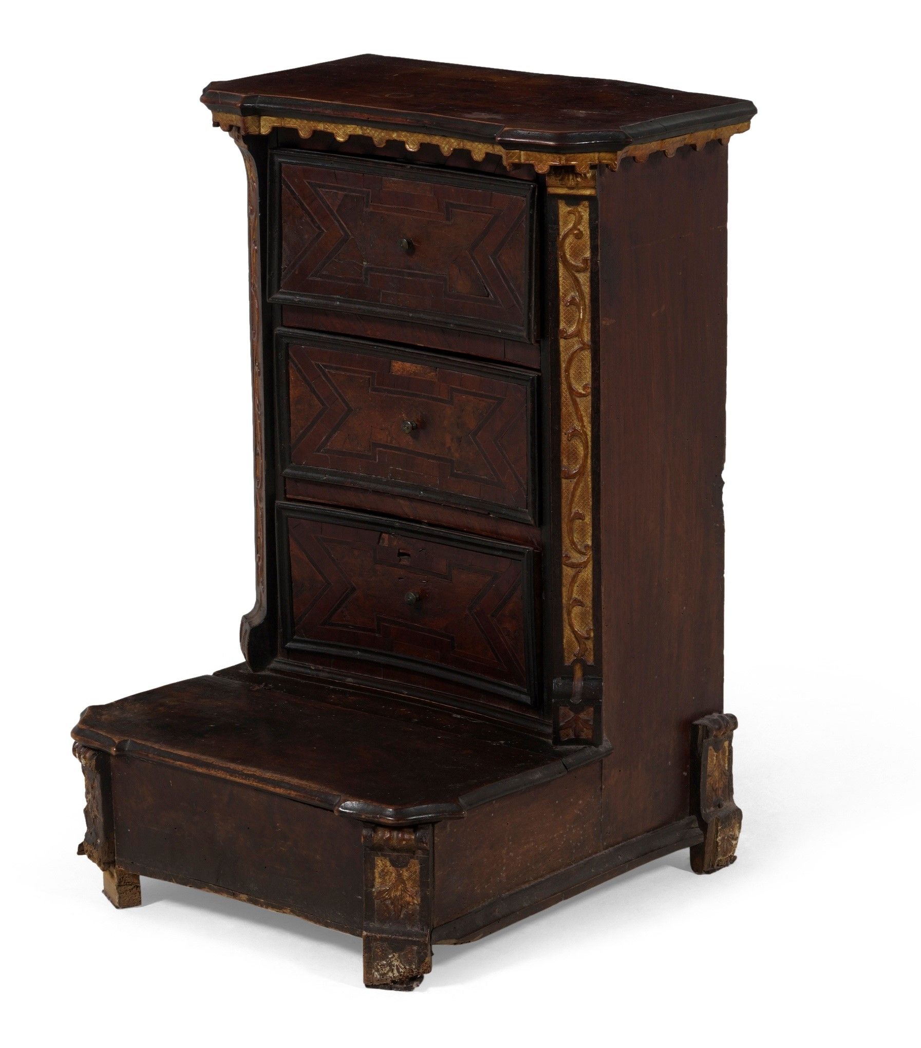 Inginocchiatoio in legno intagliato con profili dorati. XVIII secolo
