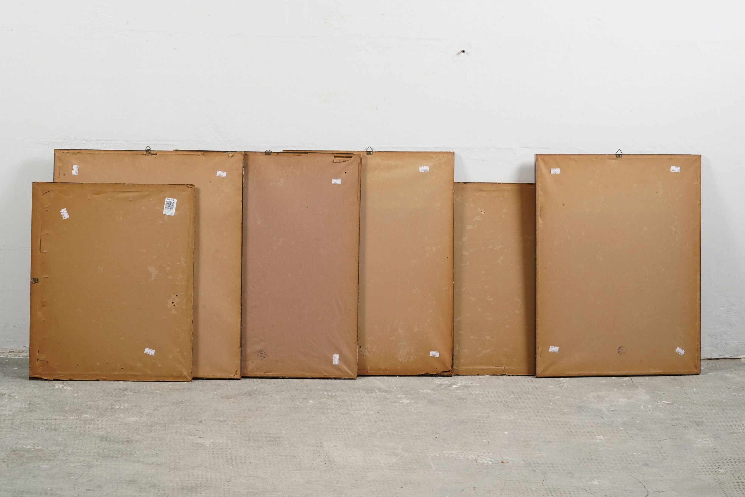 Lotto di sei incisioni colorate tra cui due scorci di città , due scene galanti [..]