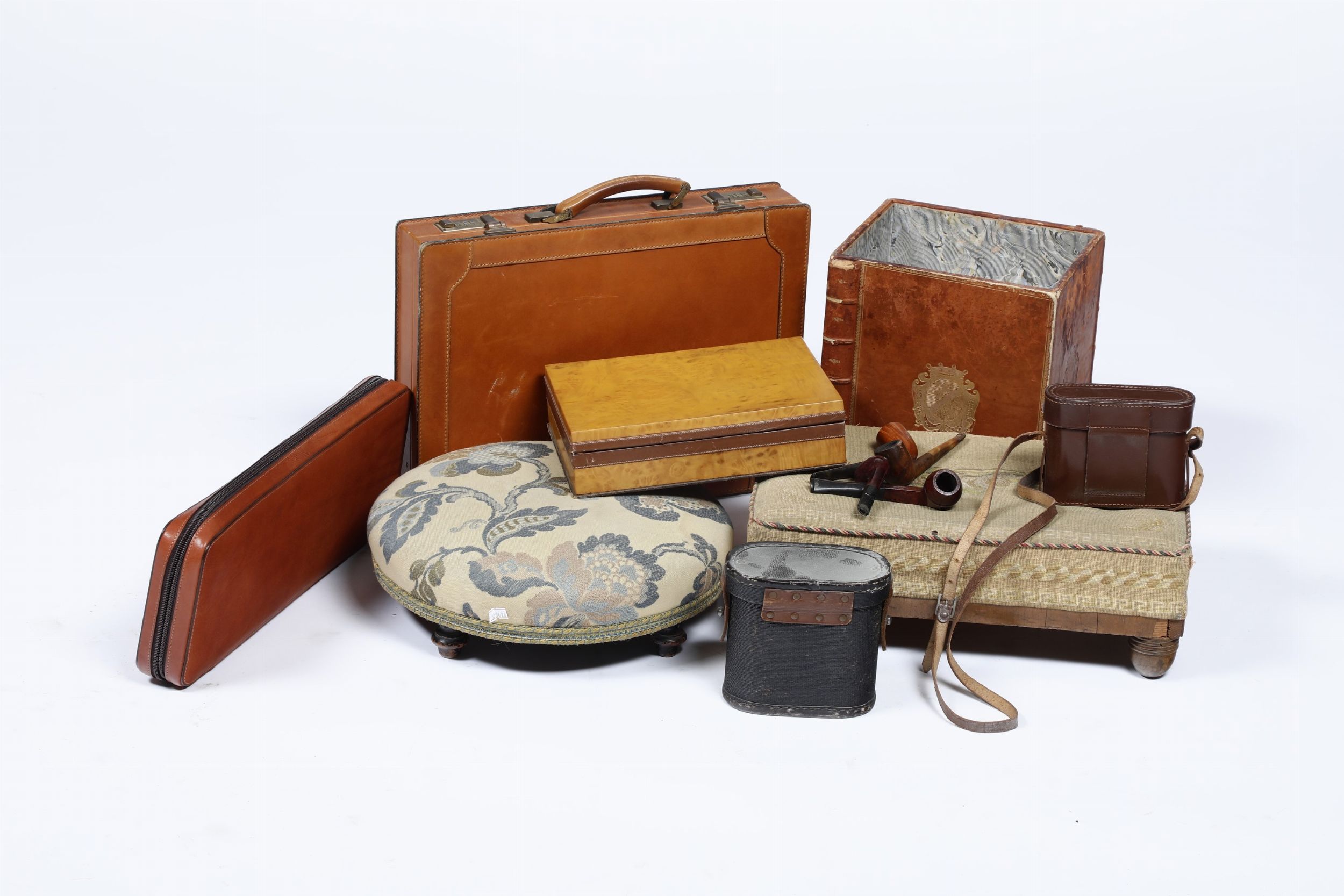 Lotto misto composto da due panchetti poggiapiedi, scatole e altro