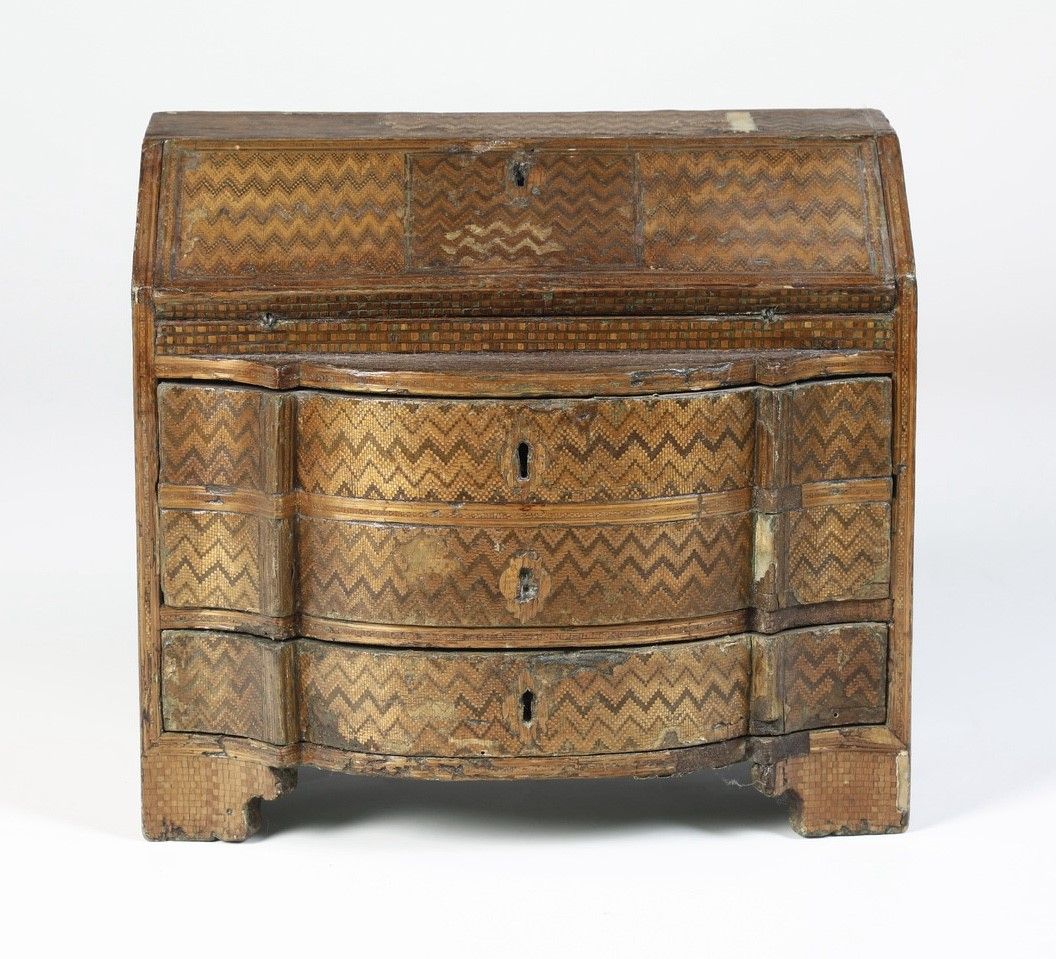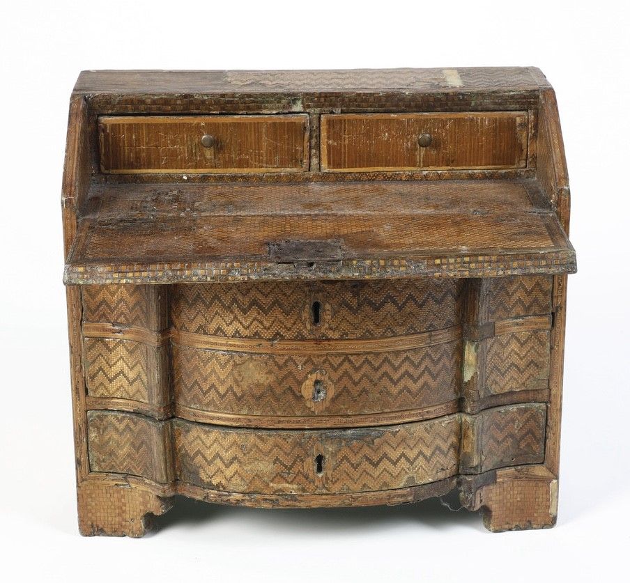 Modello di ribalta rivestito in paglia intrecciata e tinta, Piemonte XVII-XVIII [..]