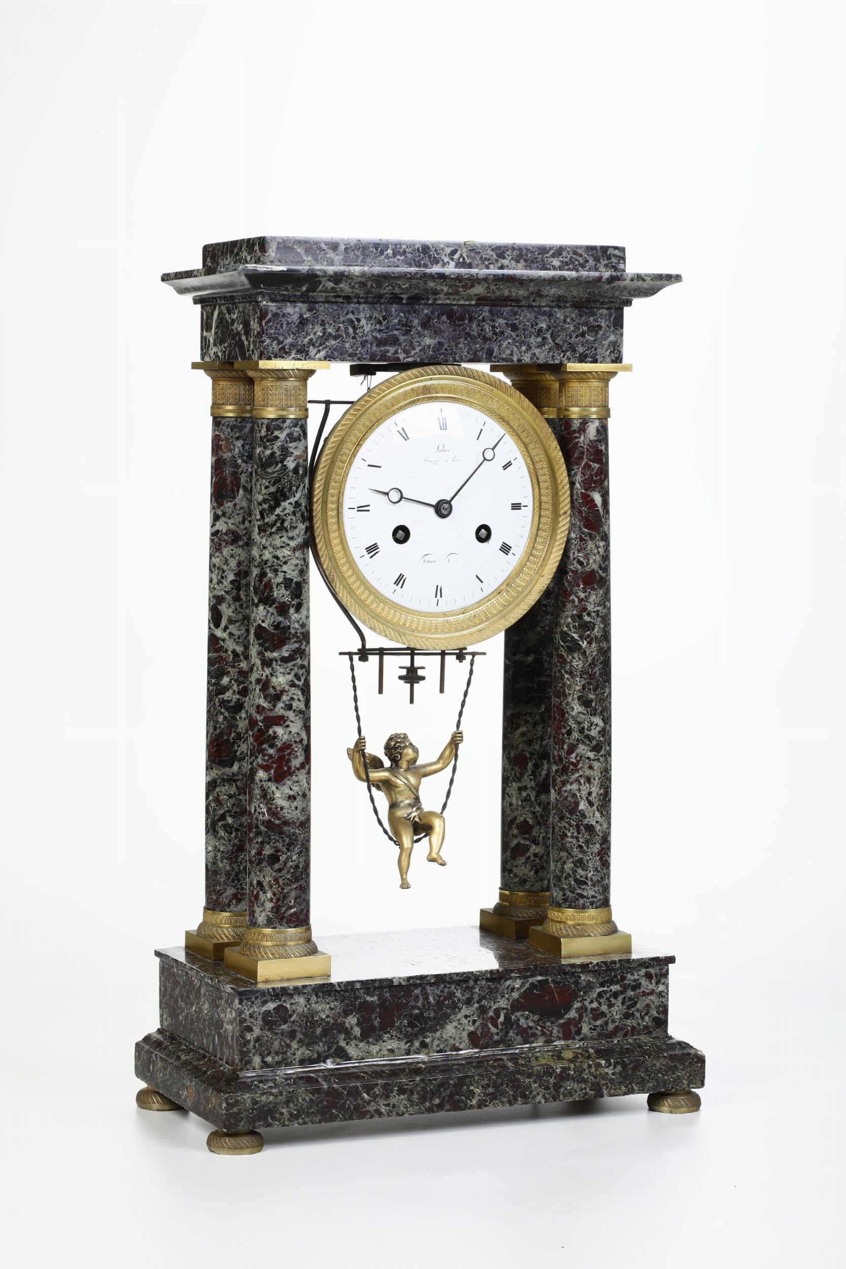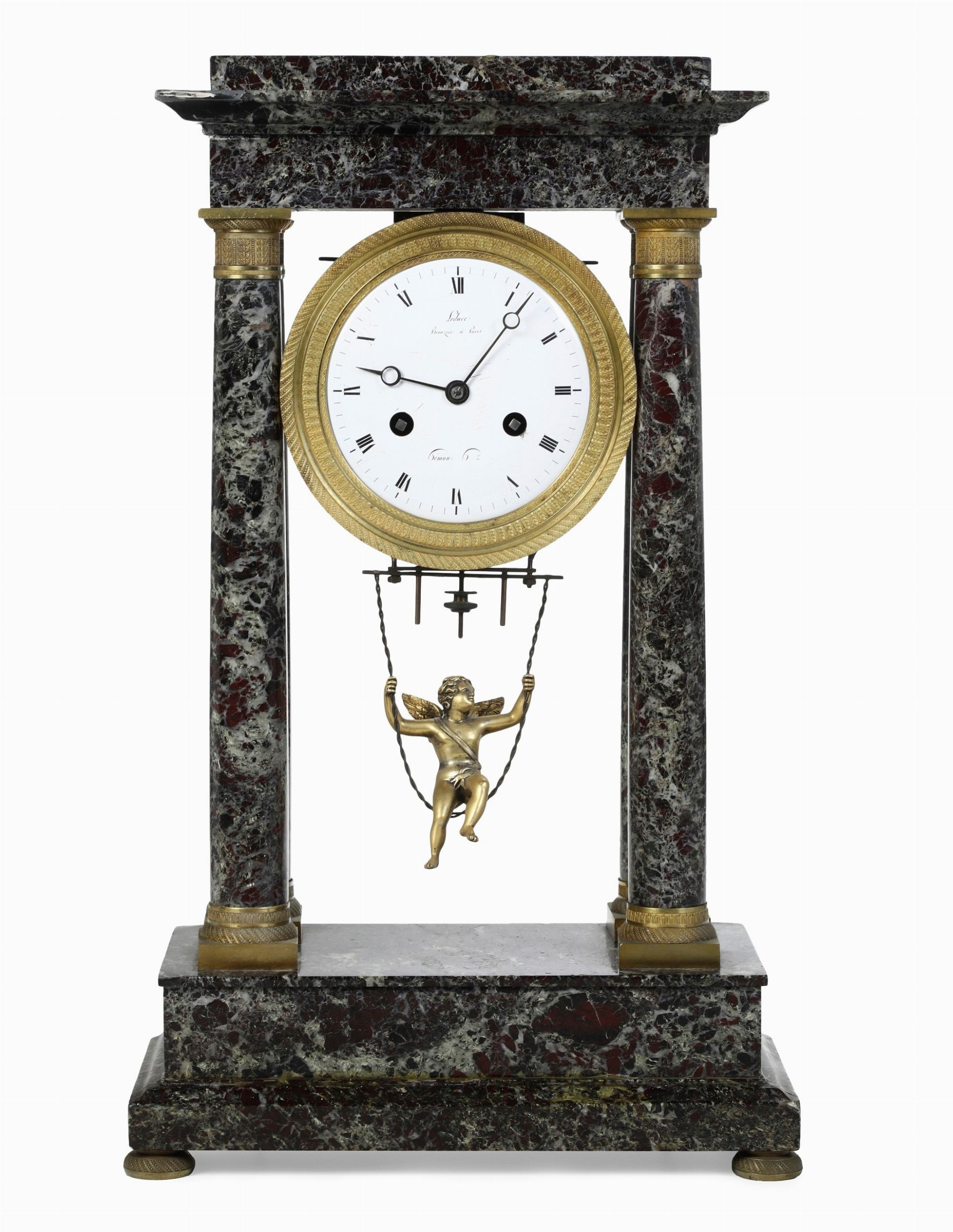Pendola da tavolo a portico in marmo. Francia XIX secolo