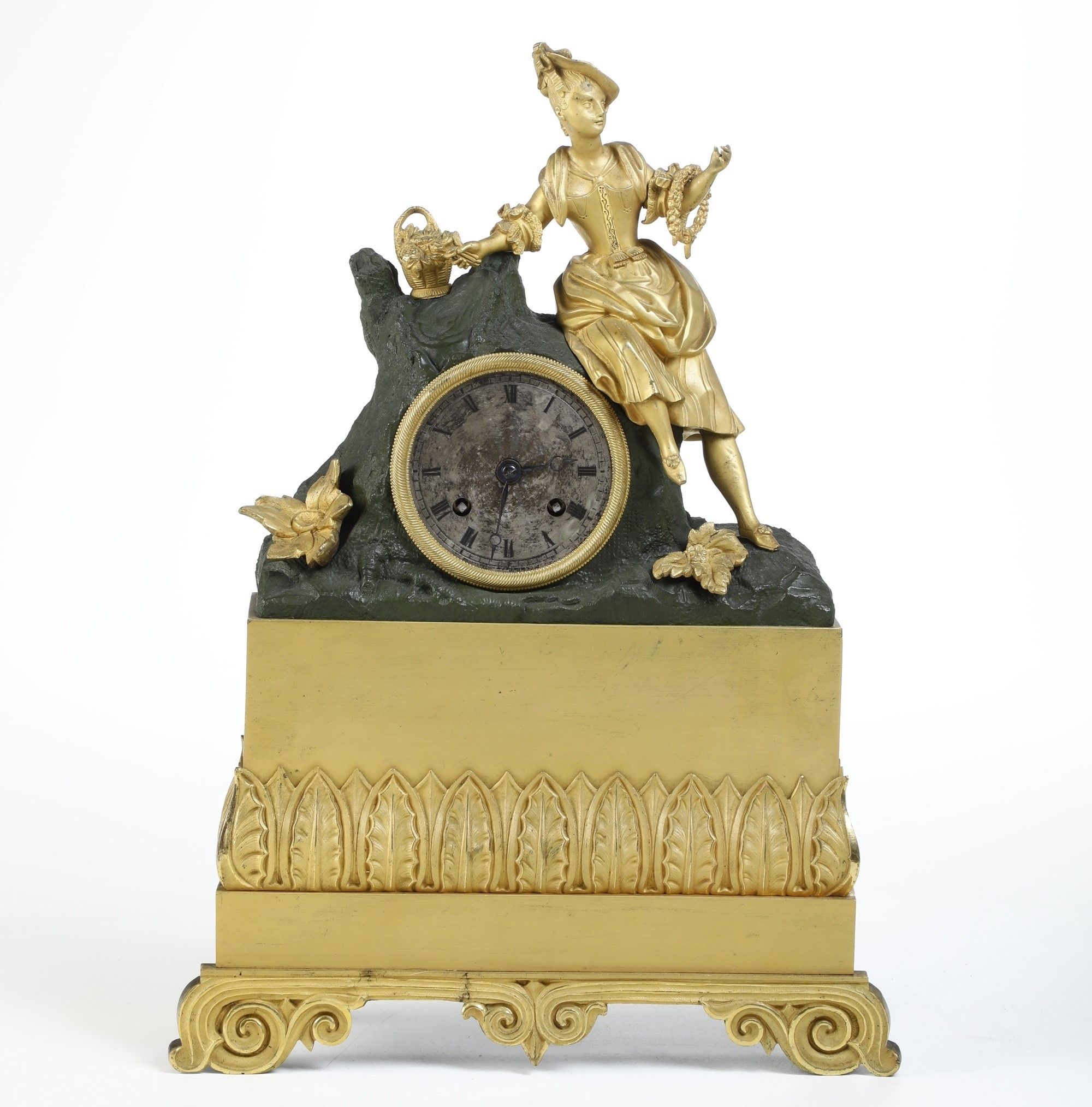 Pendola da tavolo in bronzo dorato e brunito. XIX-XX secolo