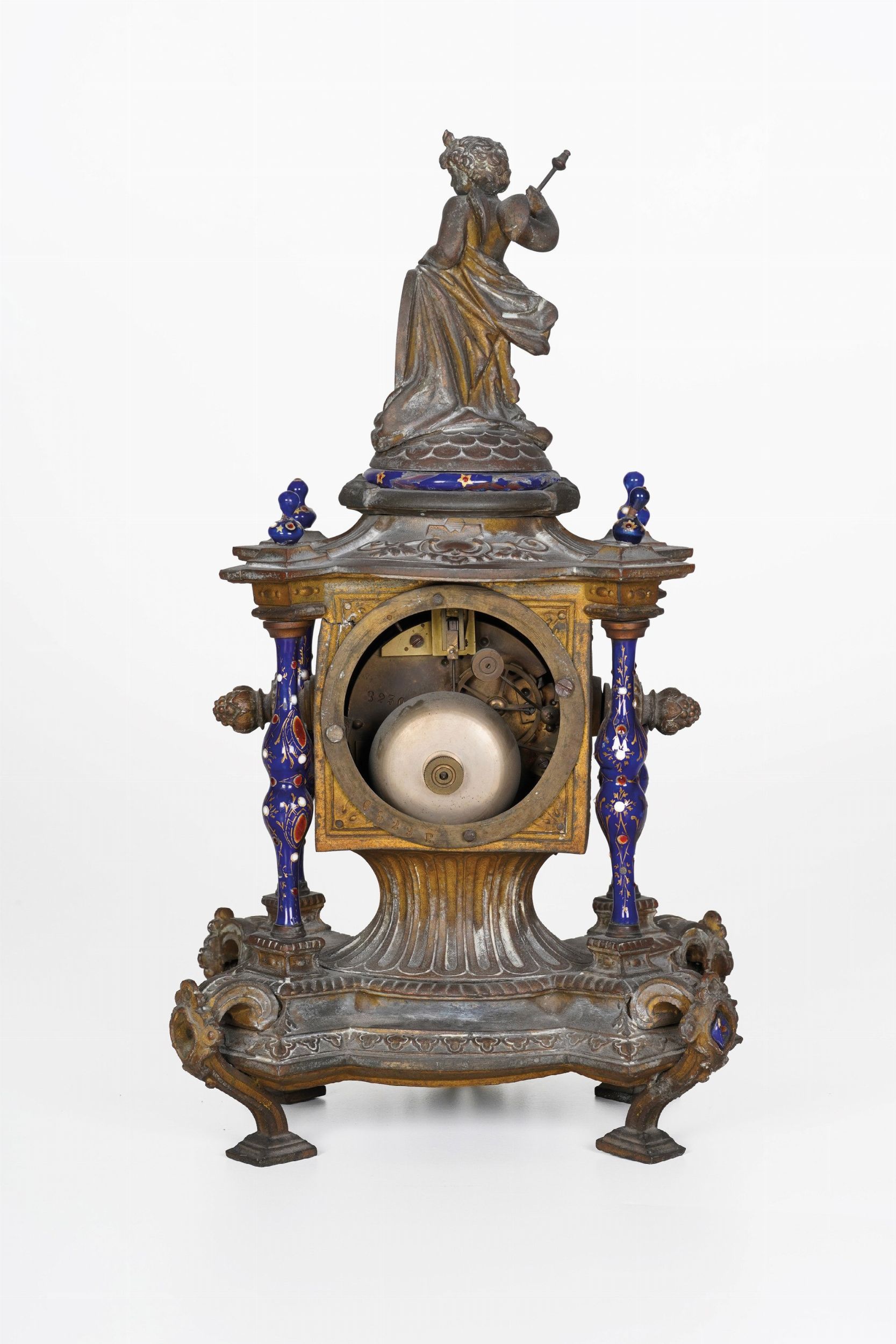 Pendola da tavolo in metallo e porcellana. XX secolo