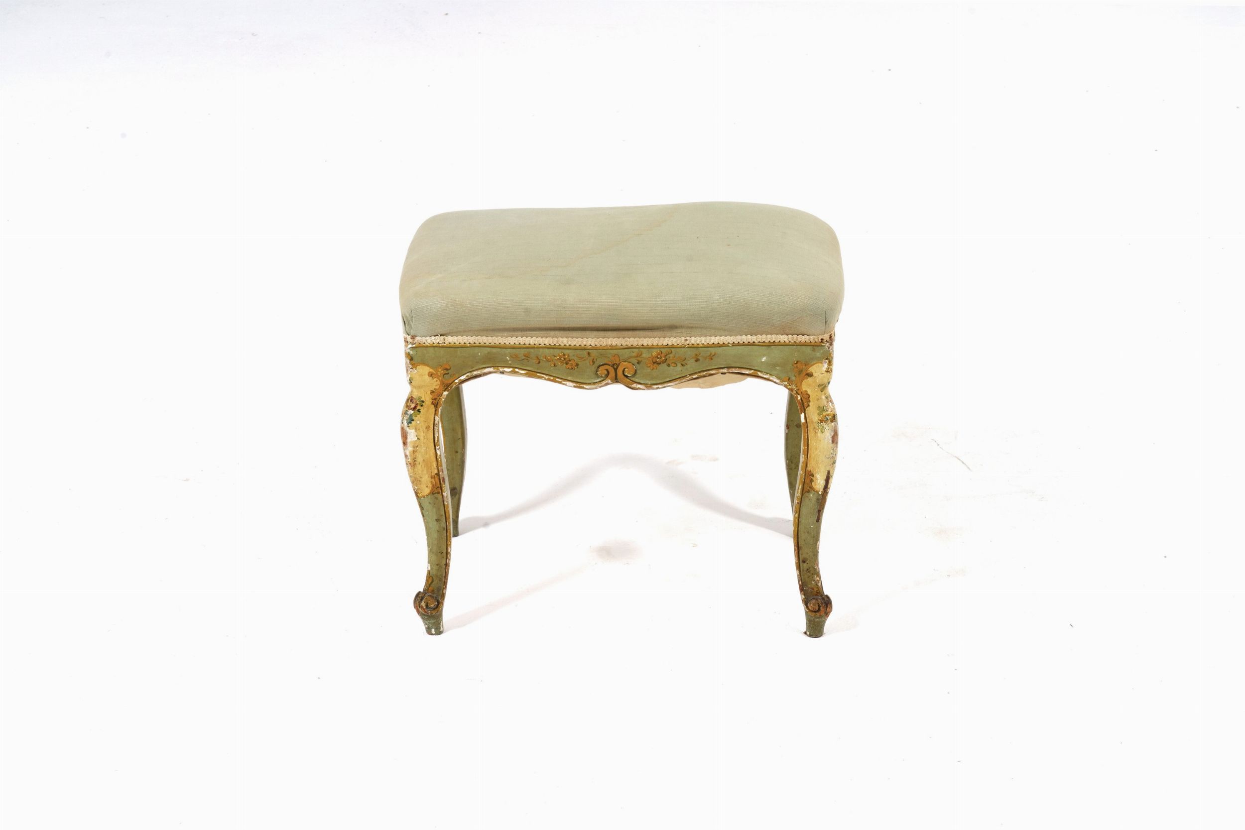 Poltrona e sgabello in legno dipinto. XVIII-XIX secolo
