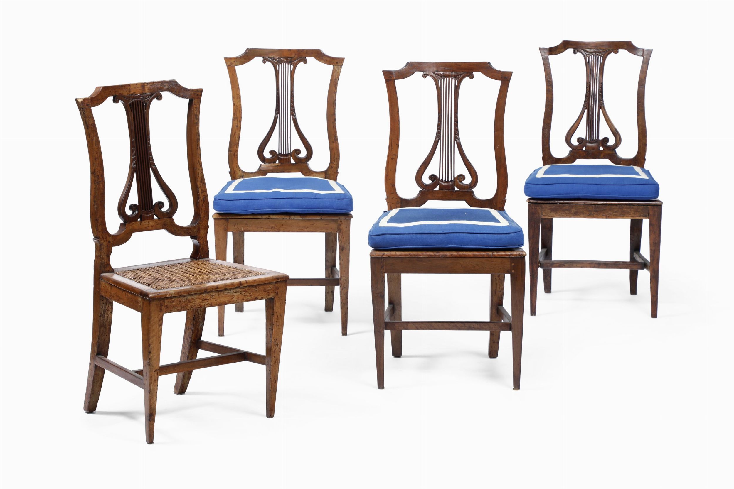 Quattro sedie a lira e divano en suite. XIX secolo