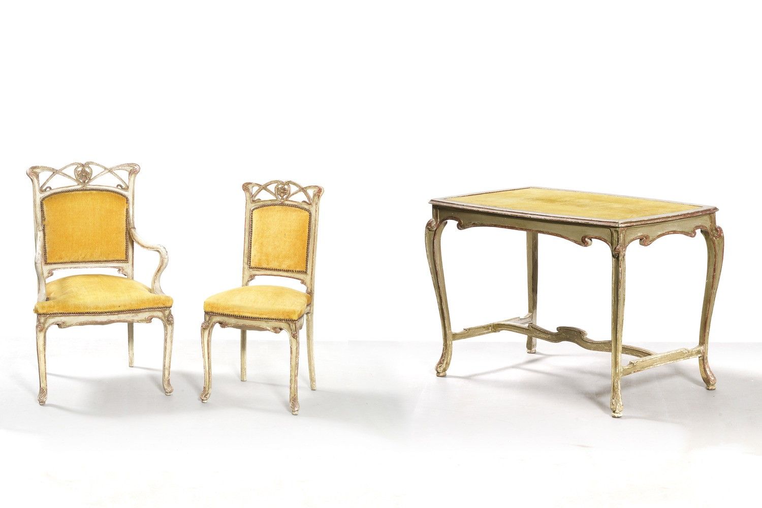 Set composto da scrittoio, poltrone e sedia. Italia inizio XX secolo