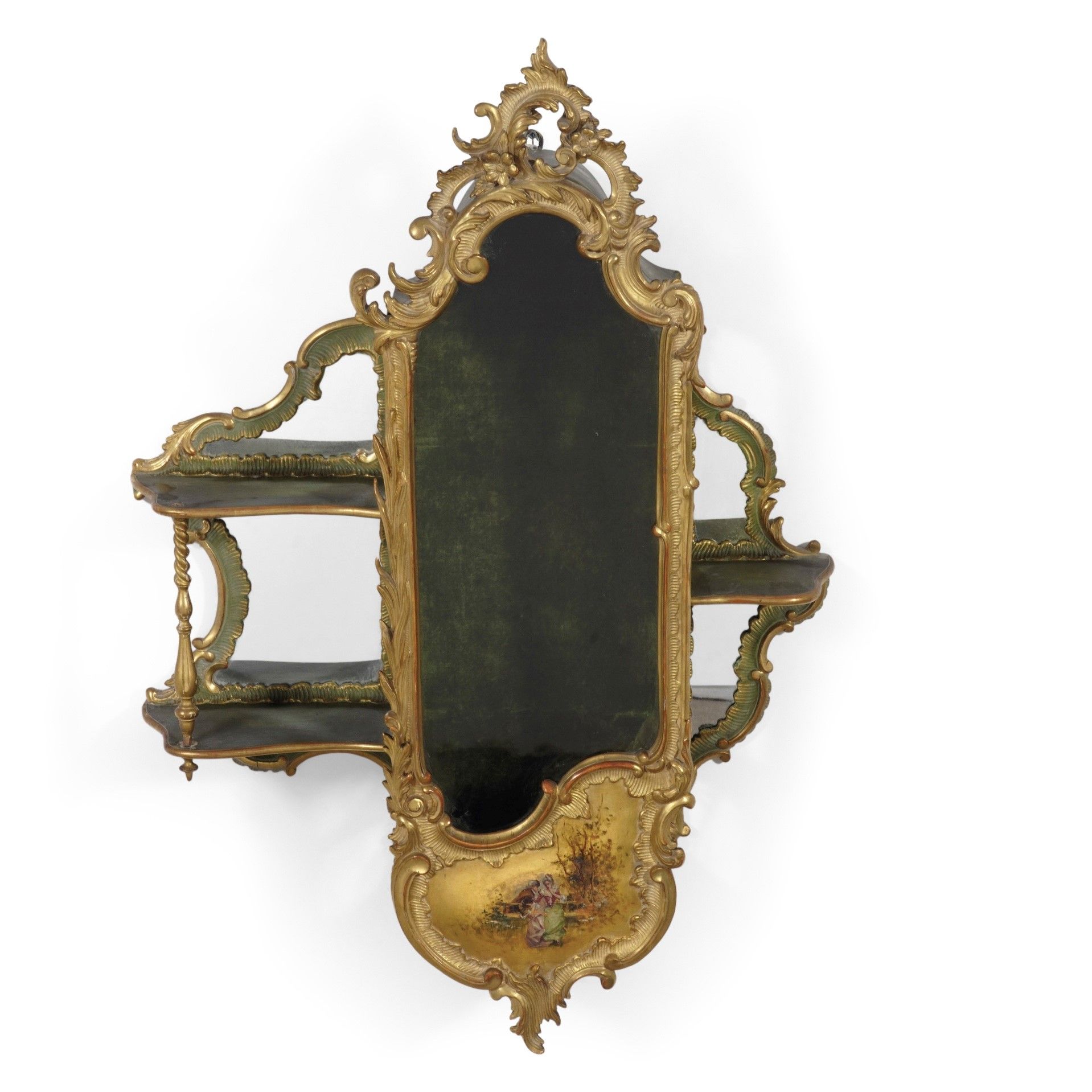 Teca da muro con mensole in legno dipinto e dorato. XX secolo