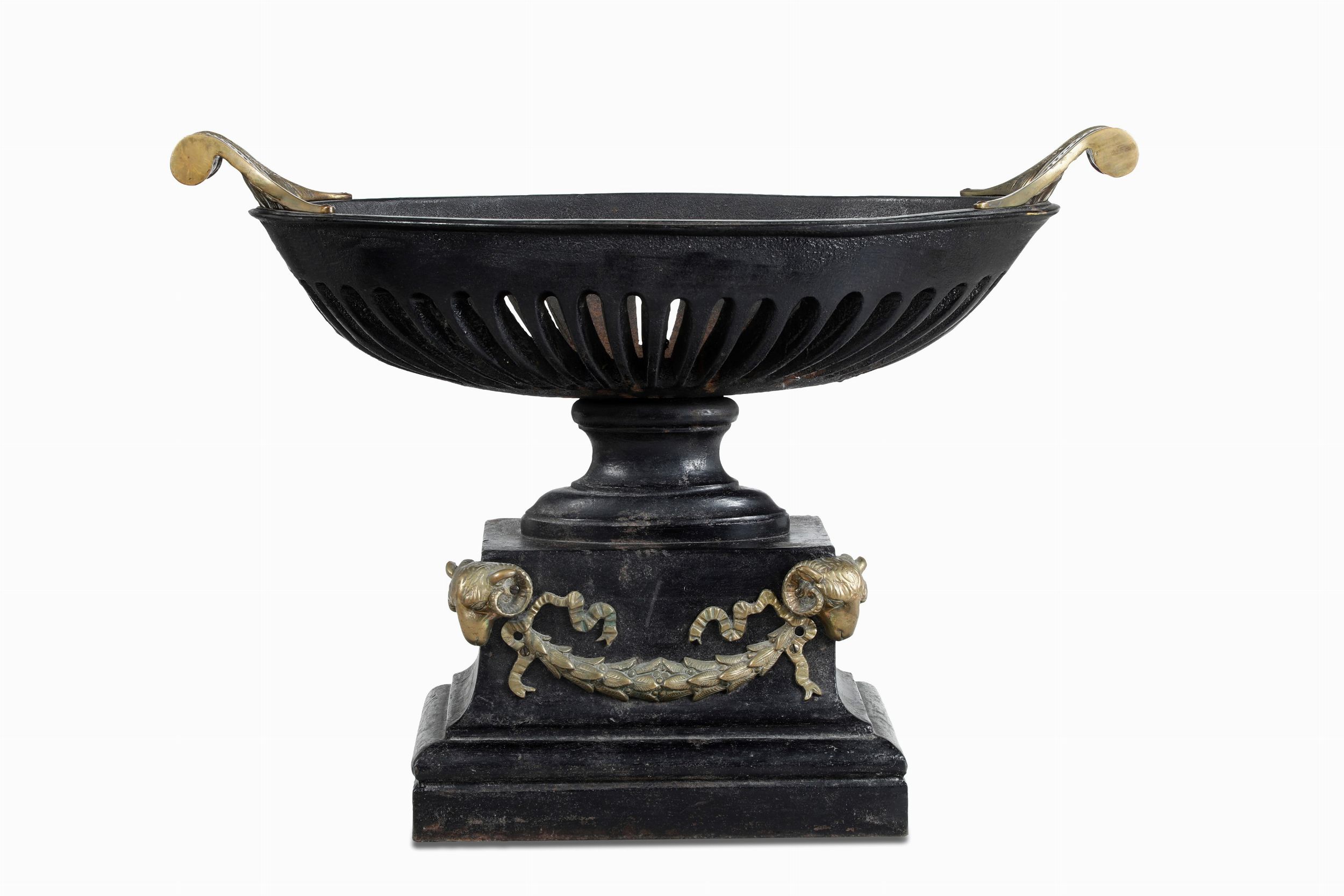 Vasca biansata in ferro fuso, patinato e bronzo dorato. XIX secolo