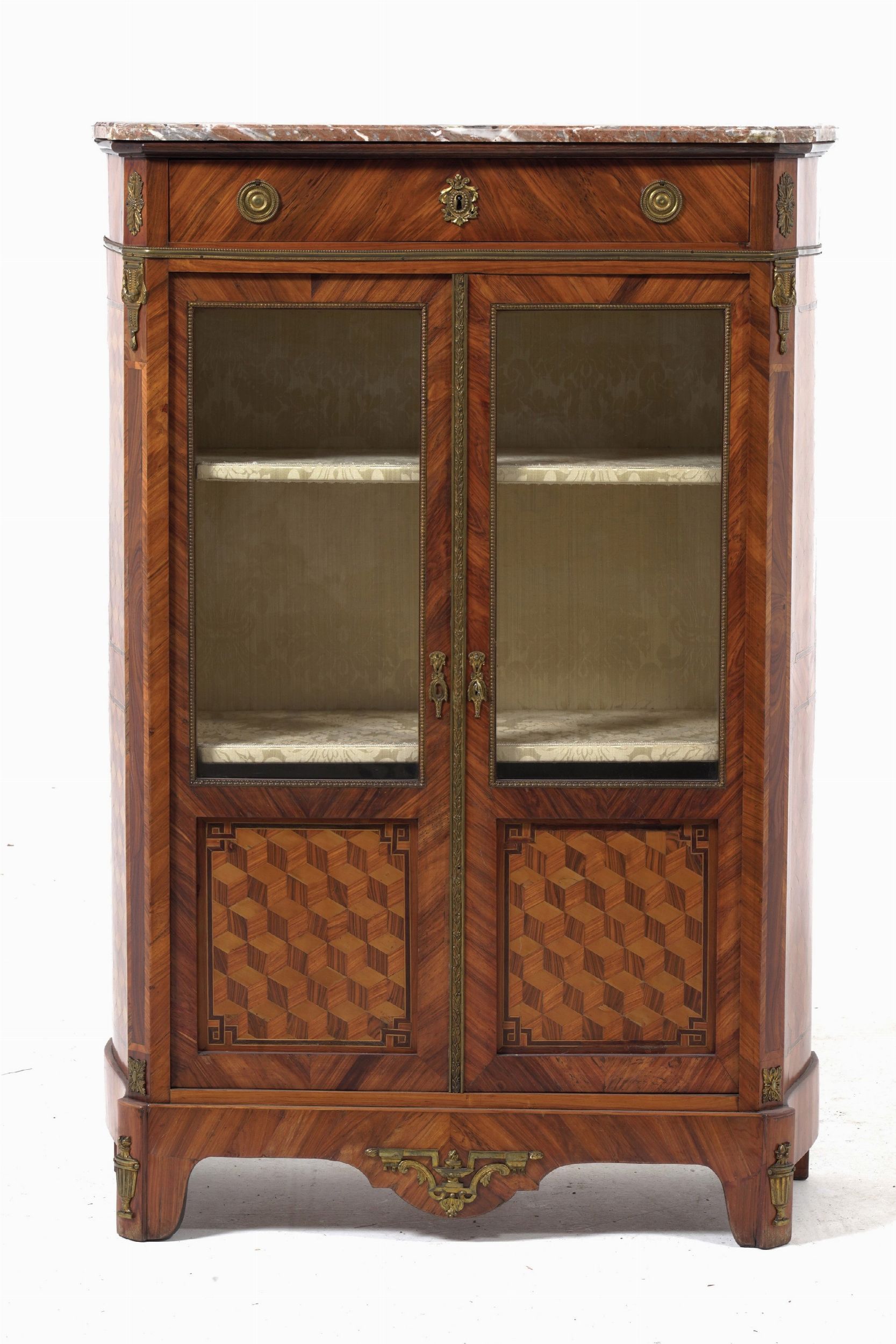 Vetrina a due ante lastronata e intarsiata. XIX secolo