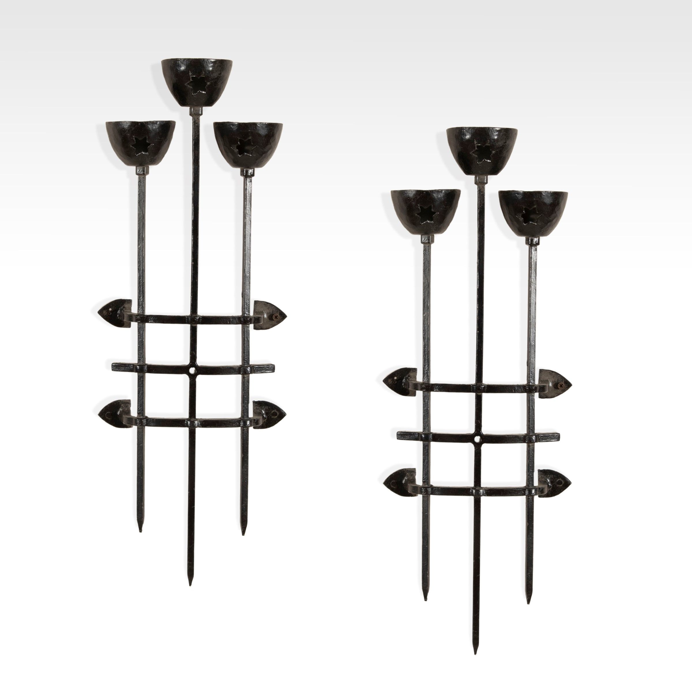 Italia, anni 50 coppia di lampade da parete in ferro battuto