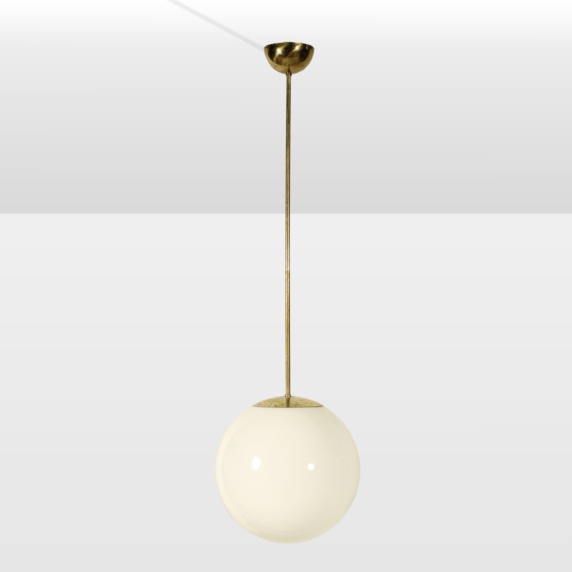 Italia, anni 50 lampada a sospensione in ottone e vetro lattimo, usure