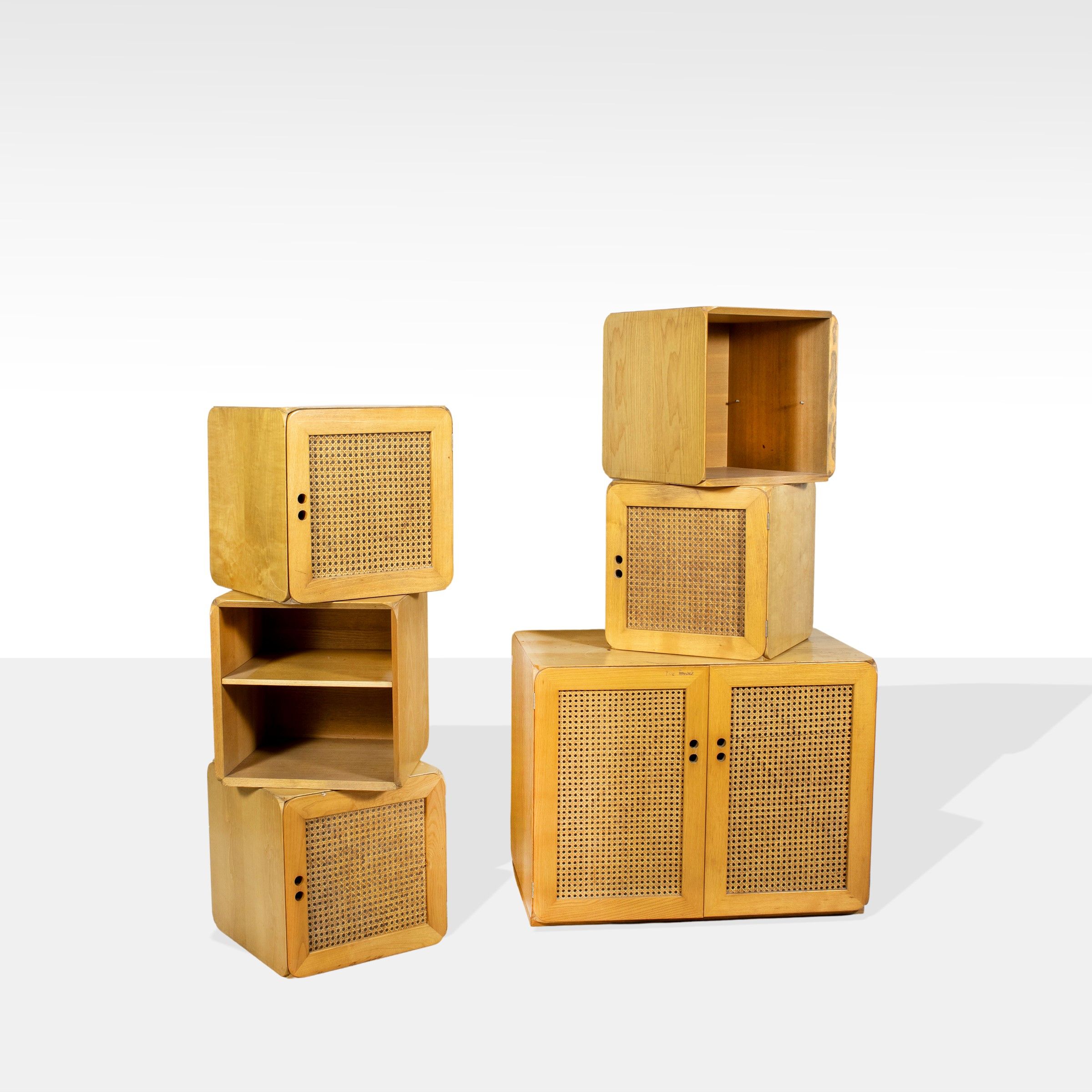 Belgio, anni 80 mobile modulare in legno e paglia di Vienna, usure