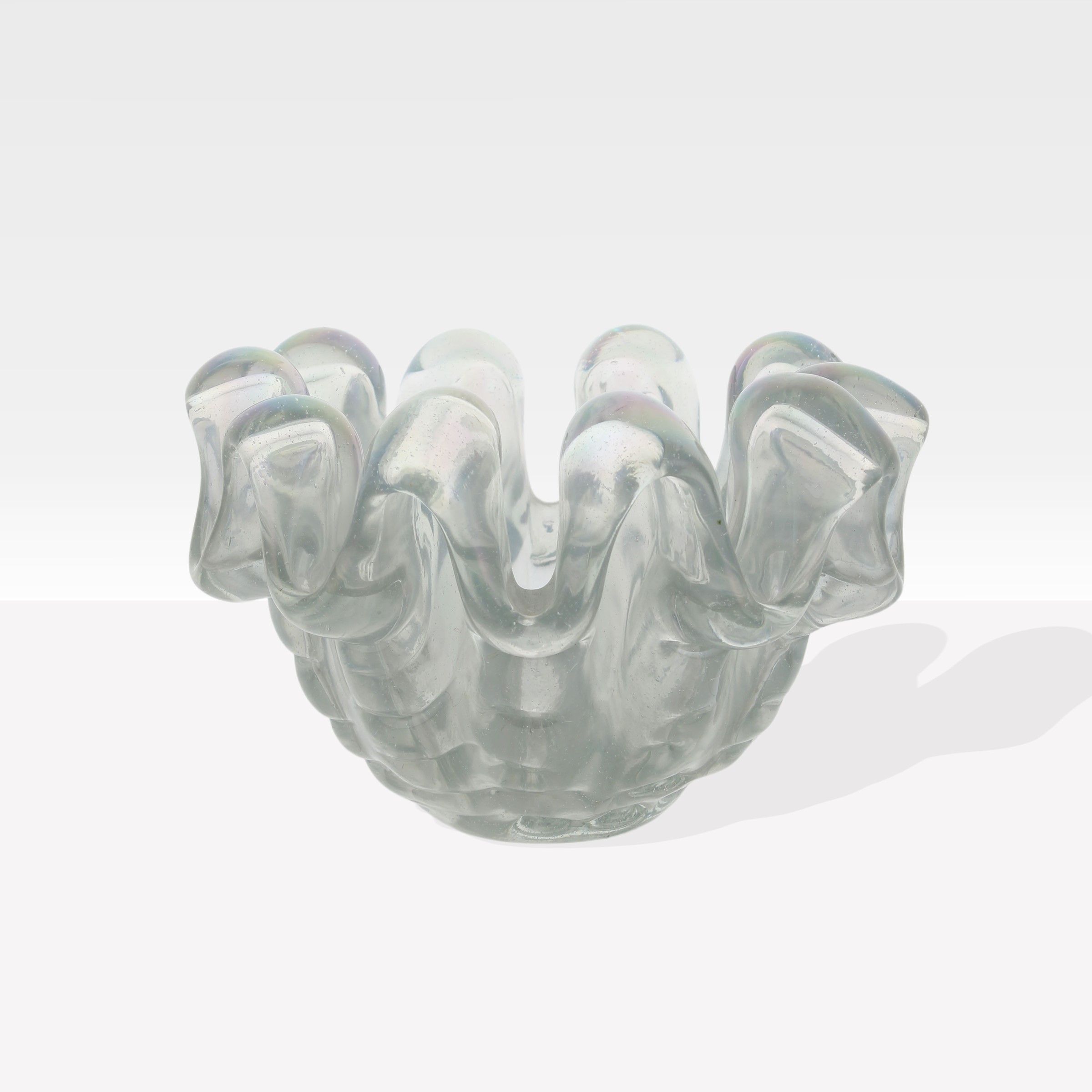 Murano, anni 40 coppa conchiglia in vetro iridescente
