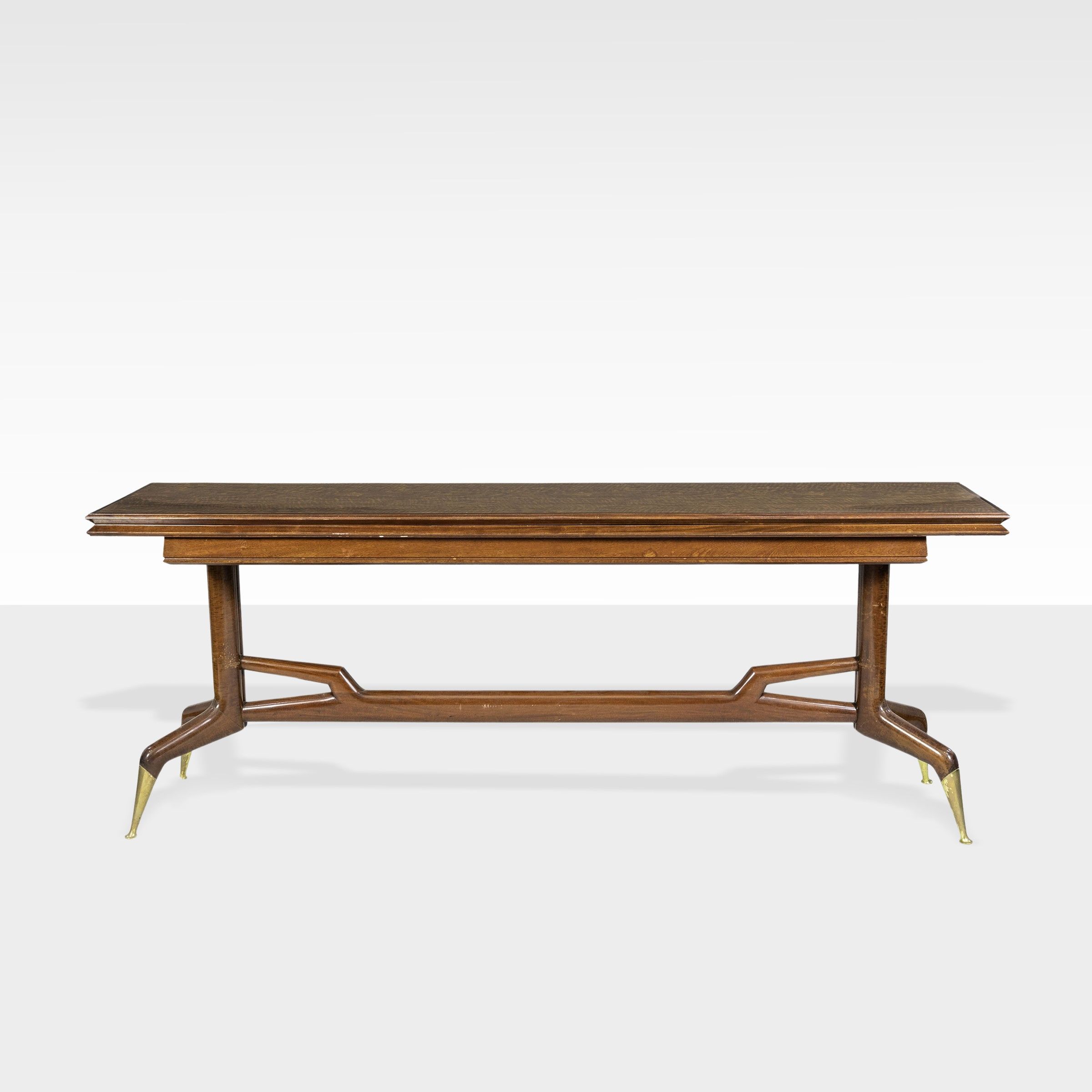 Italia, anni 50 console con piano apribile in legno ed ottone