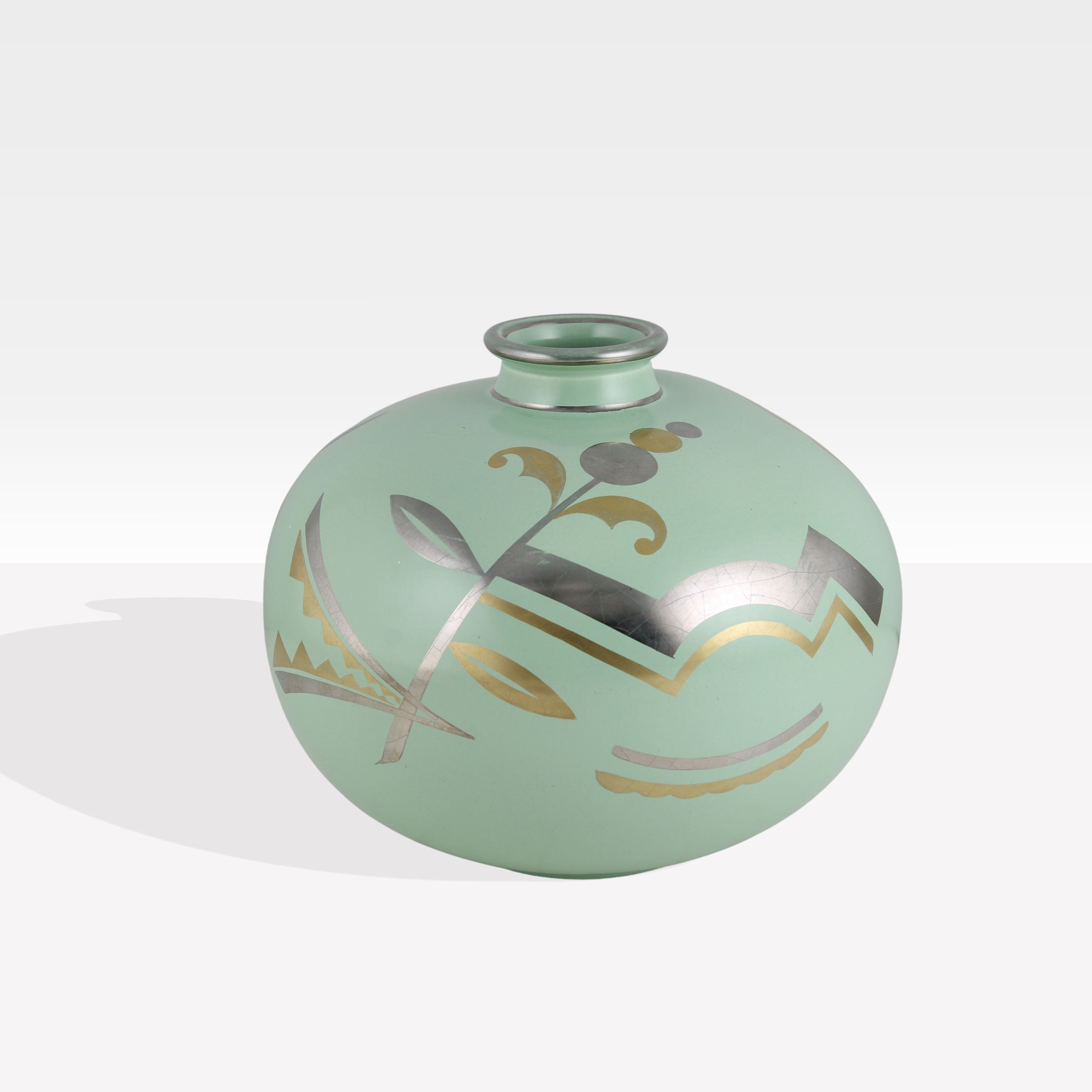 Tours, anni 20-30 vaso Decò in terracotta smaltata, firmato, lievi usure