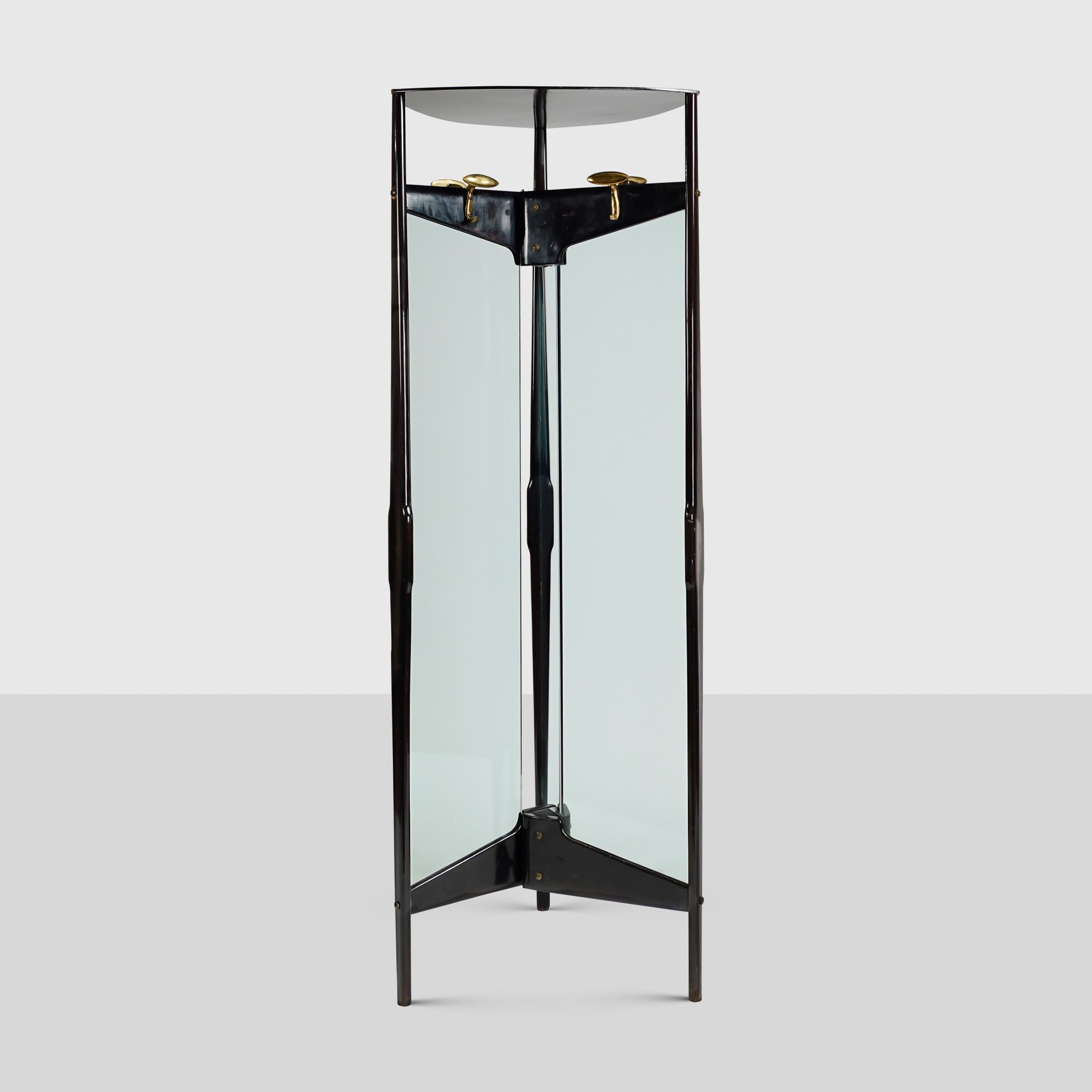 Italia, anni 50 appendiabiti in legno, ottone e vetro trasparente, lievi difetti