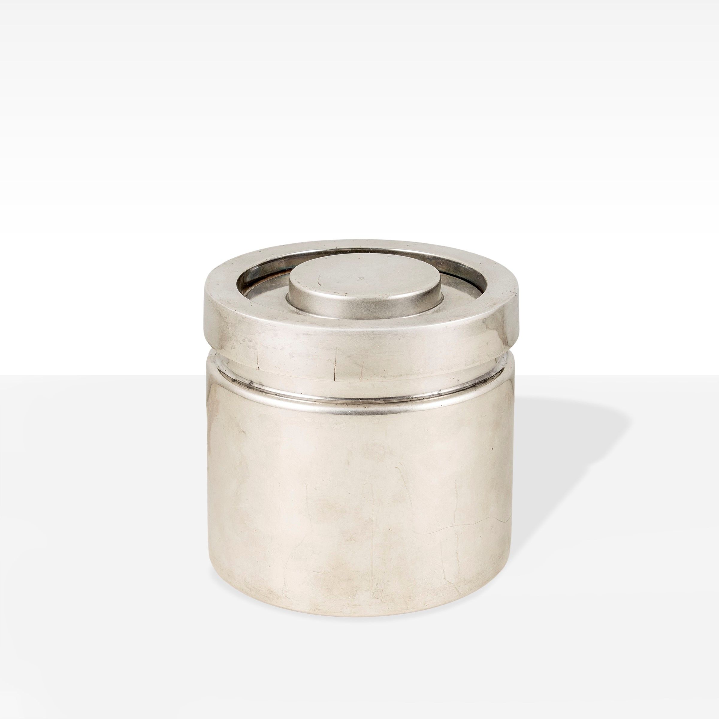 Italia, anni 70 secchiello portaghiaccio in metallo argentato, marchio della produzione, lievi usure