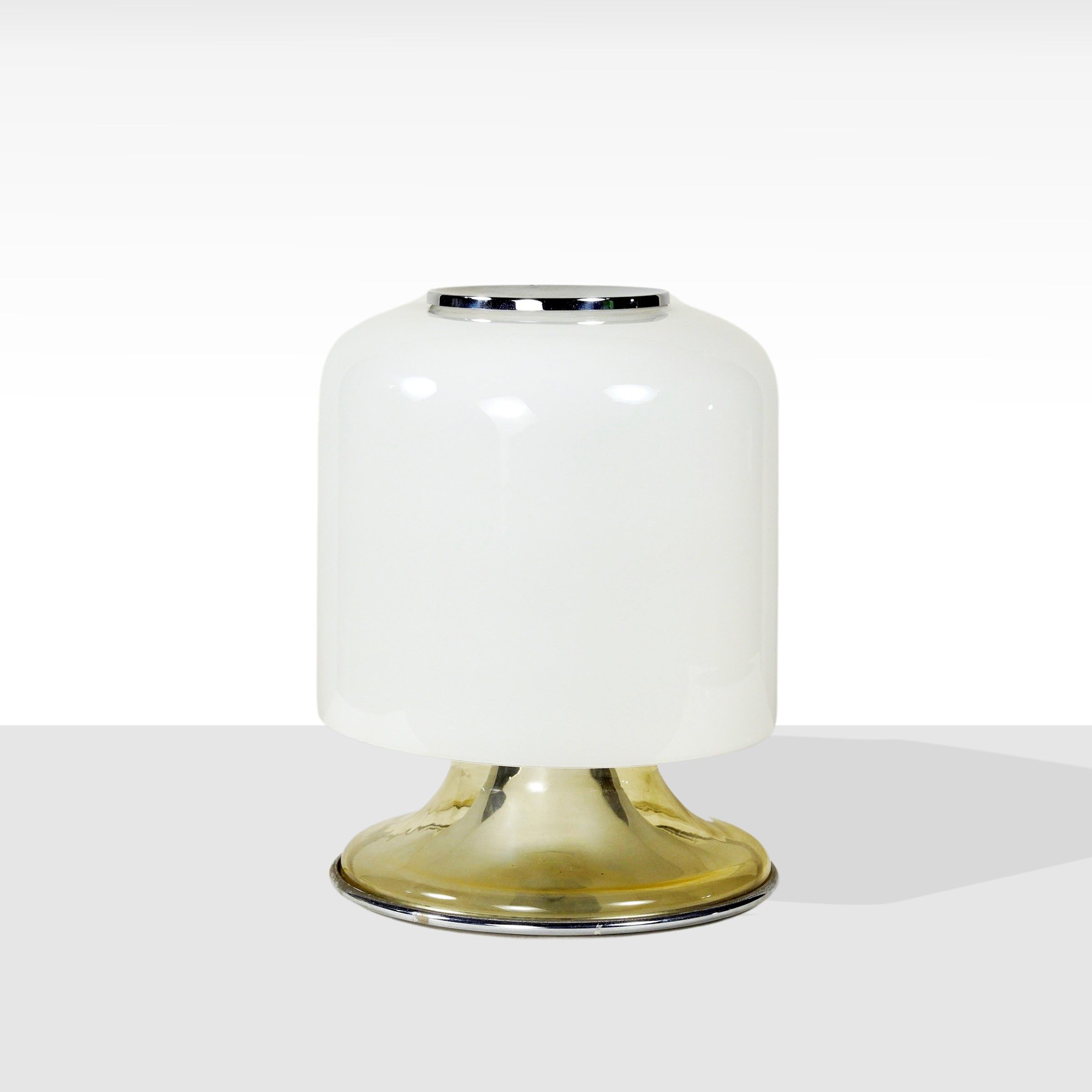 anni 70 lampada da tavolo in metallo cromato e vetro opalino, lievi usure