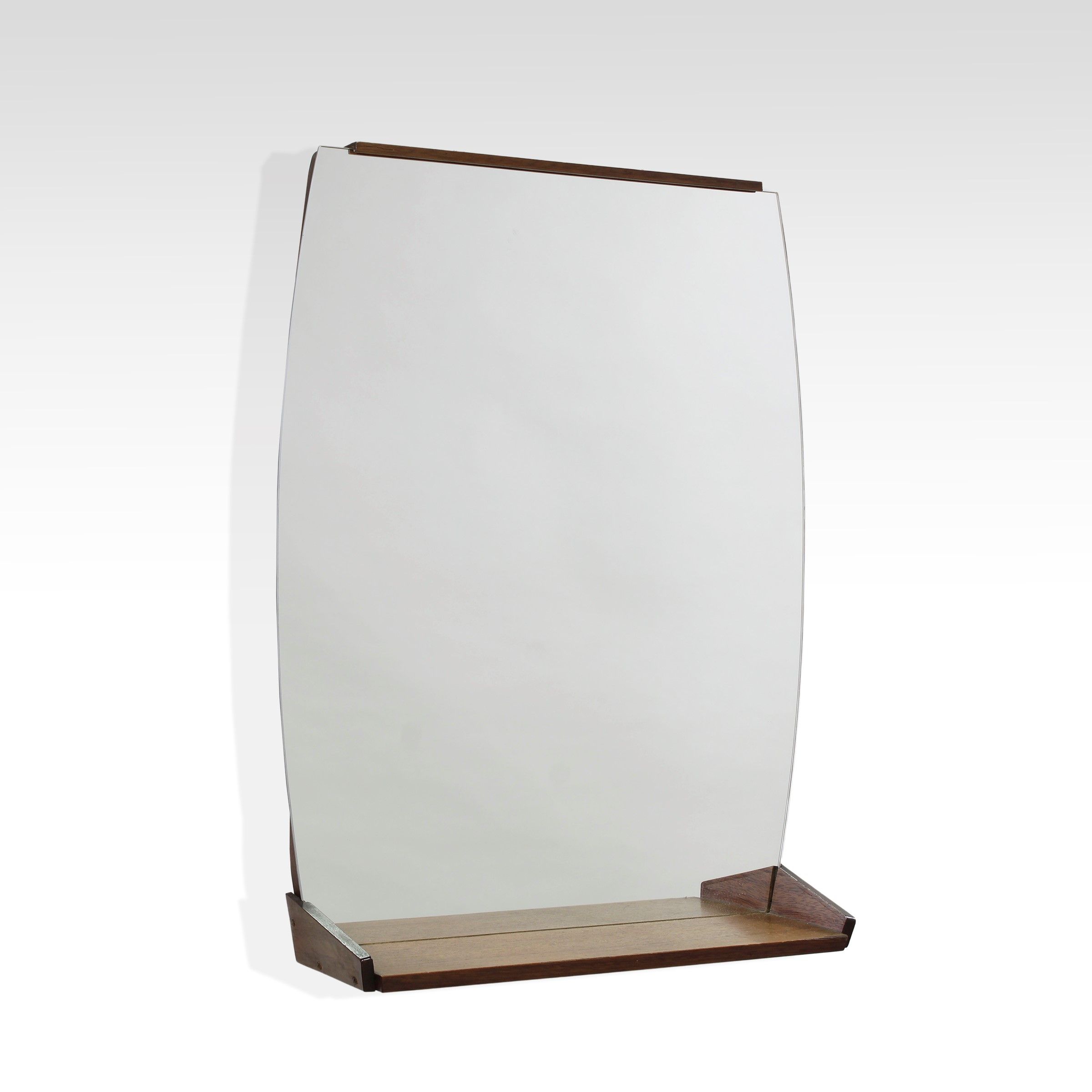 anni 60 specchio da parete in vetro specchiato con mensola in legno