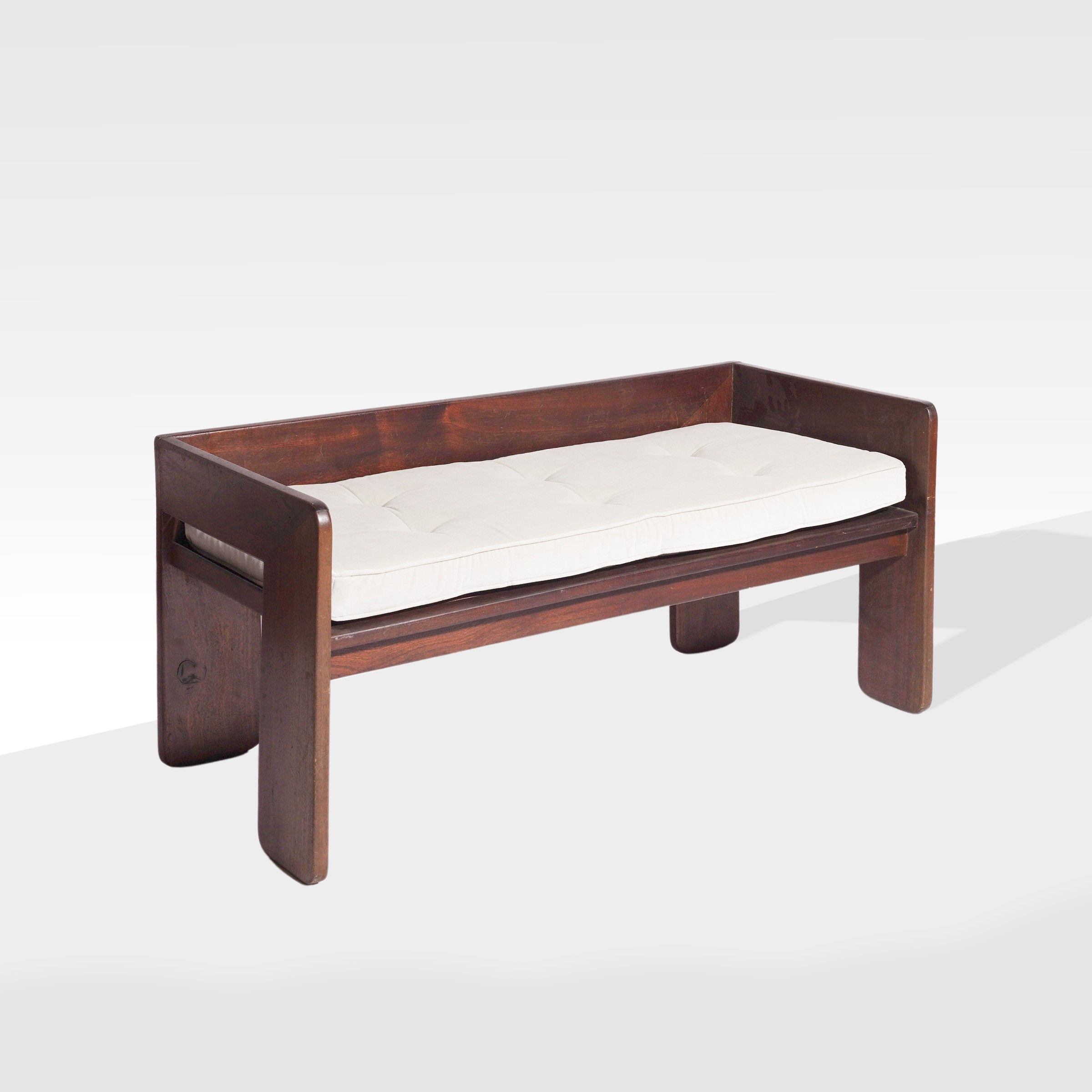 anni 60 panca in legno e tessuto imbottito, lievi usure