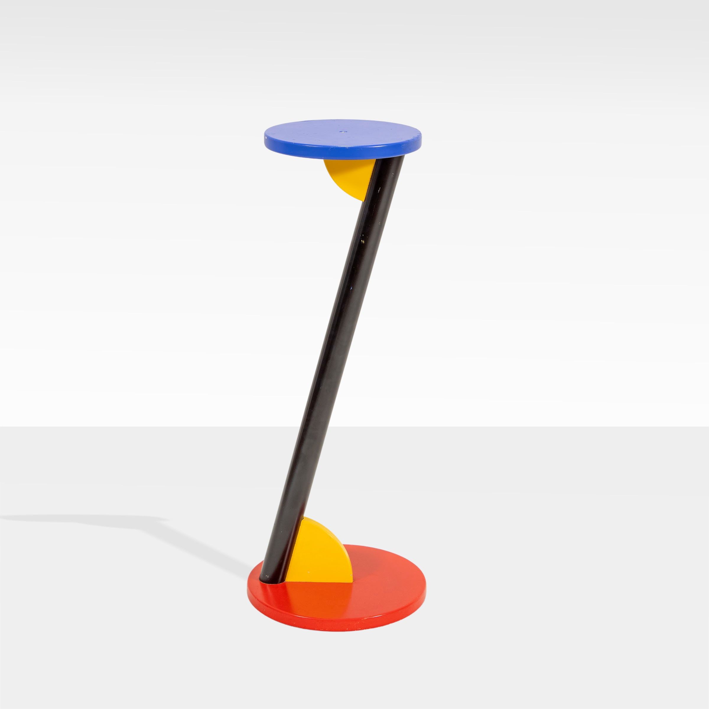 anni 80 portavaso o tavolino postmoderno in legno verniciato, lievi usure