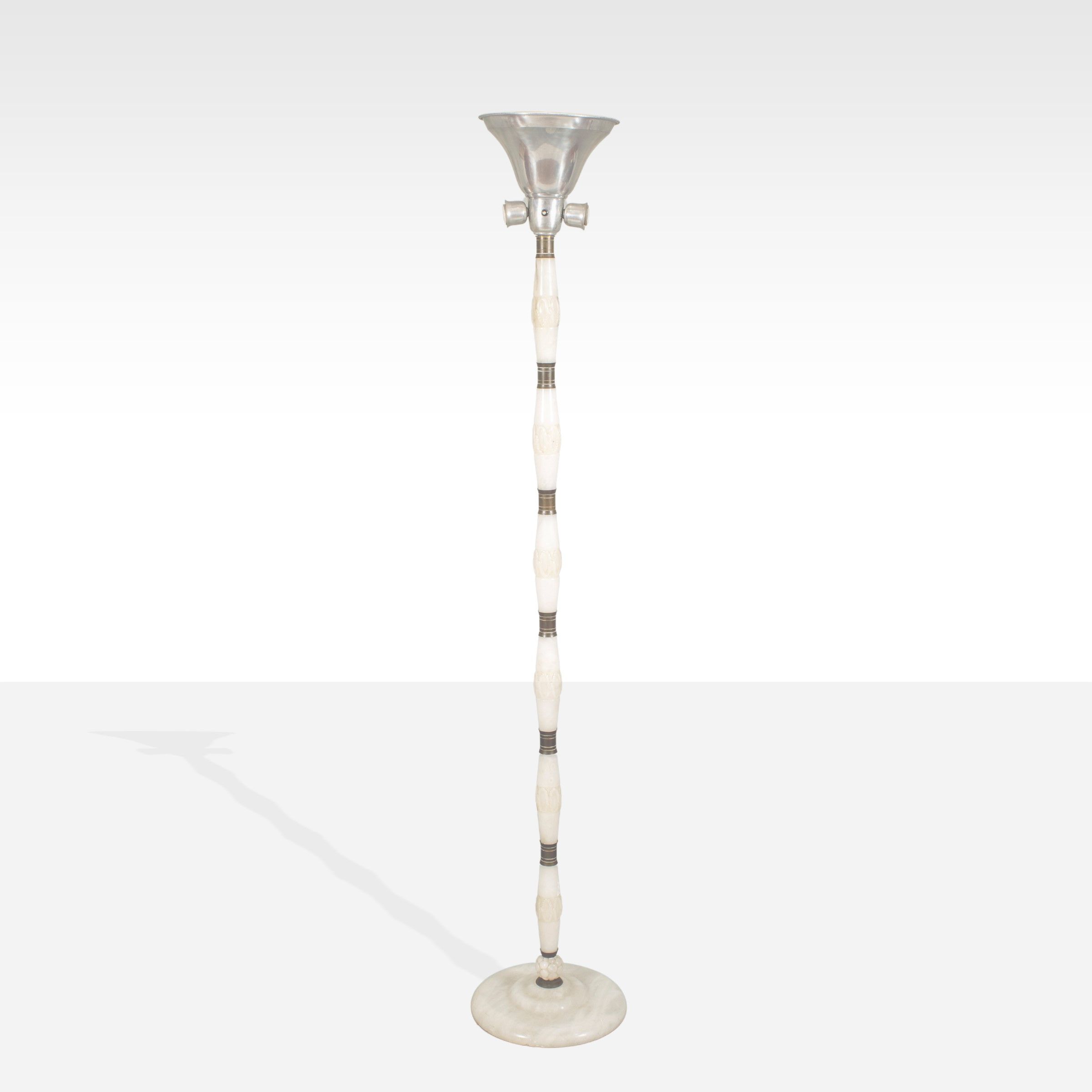 anni 40 lampada da terra in ottone, metallo e alabastro, lievi usure