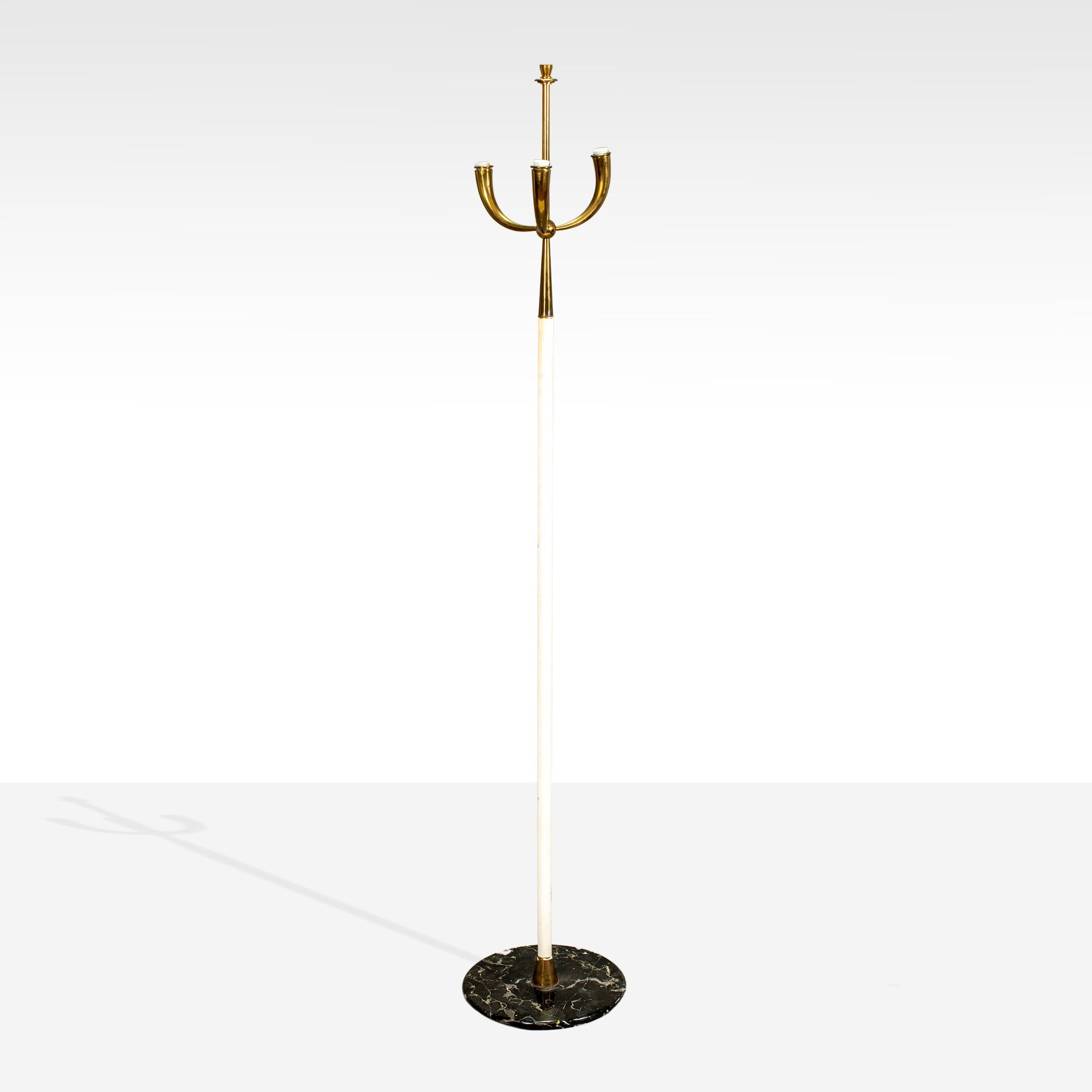 anni 50 lampada da terra in metallo verniciato, ottone e base in marmo, usure