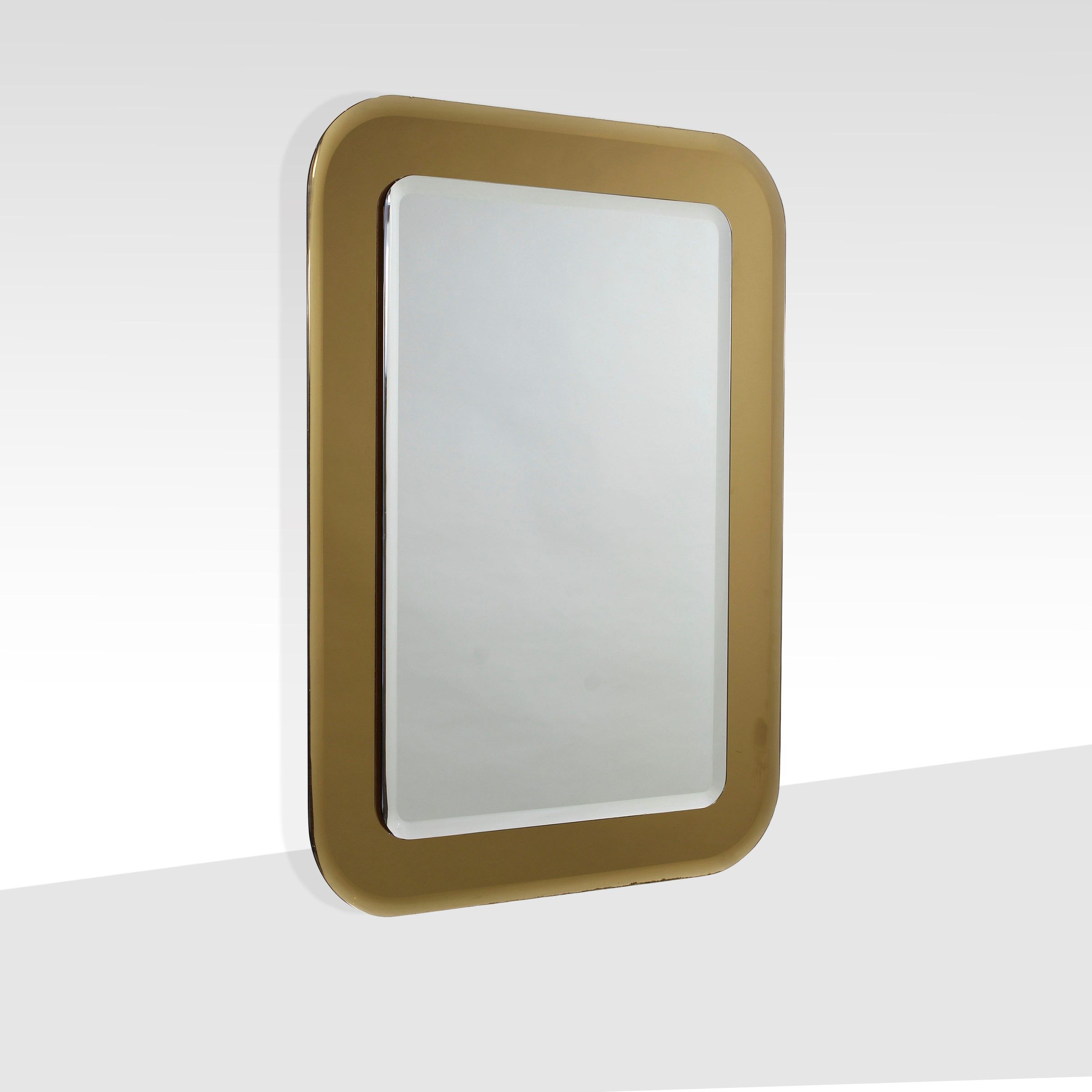 anni 70 specchio da parete in vetro specchiato e vetro colorato, usure