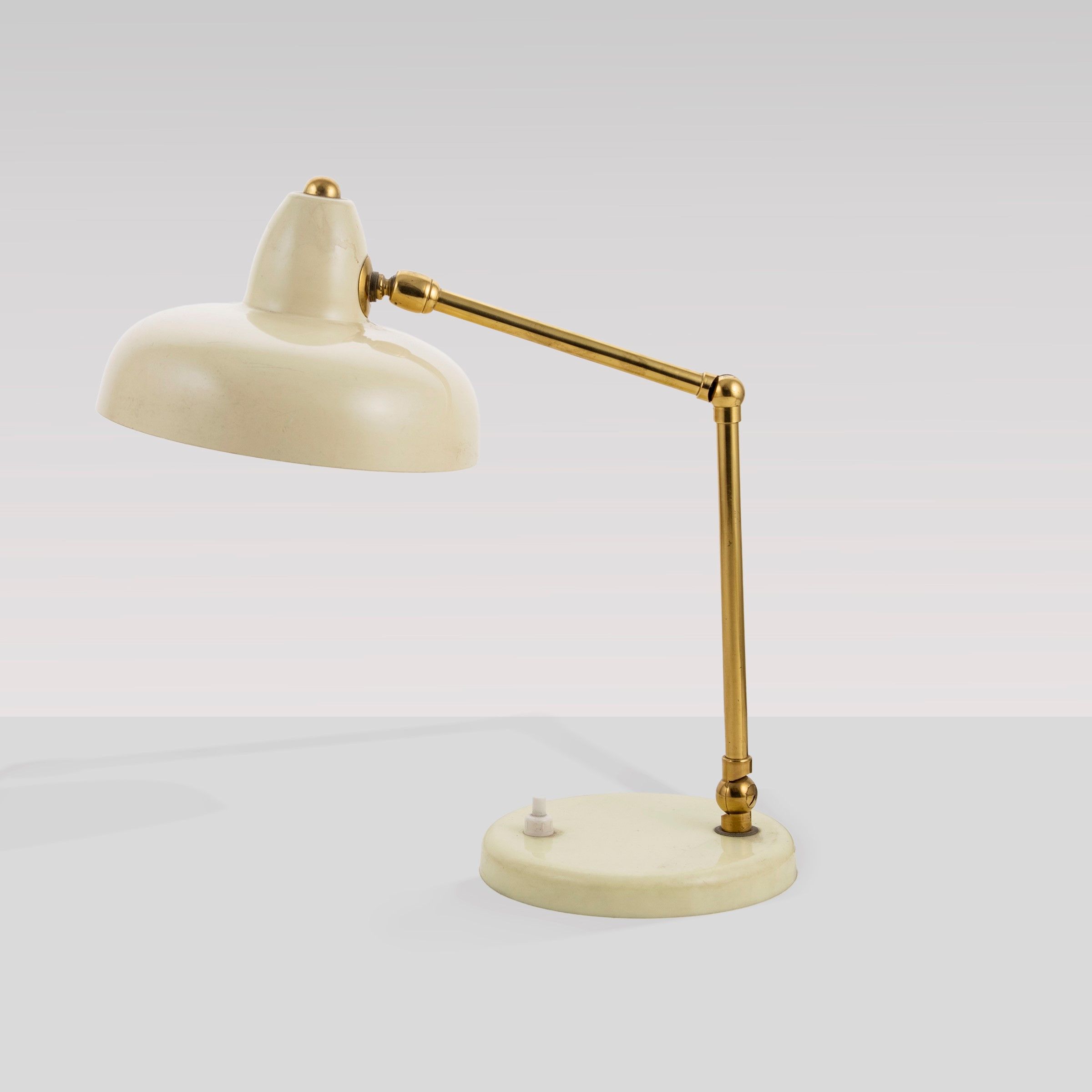 anni 50 lampada da tavolo orientabile in ottone e metallo verniciato