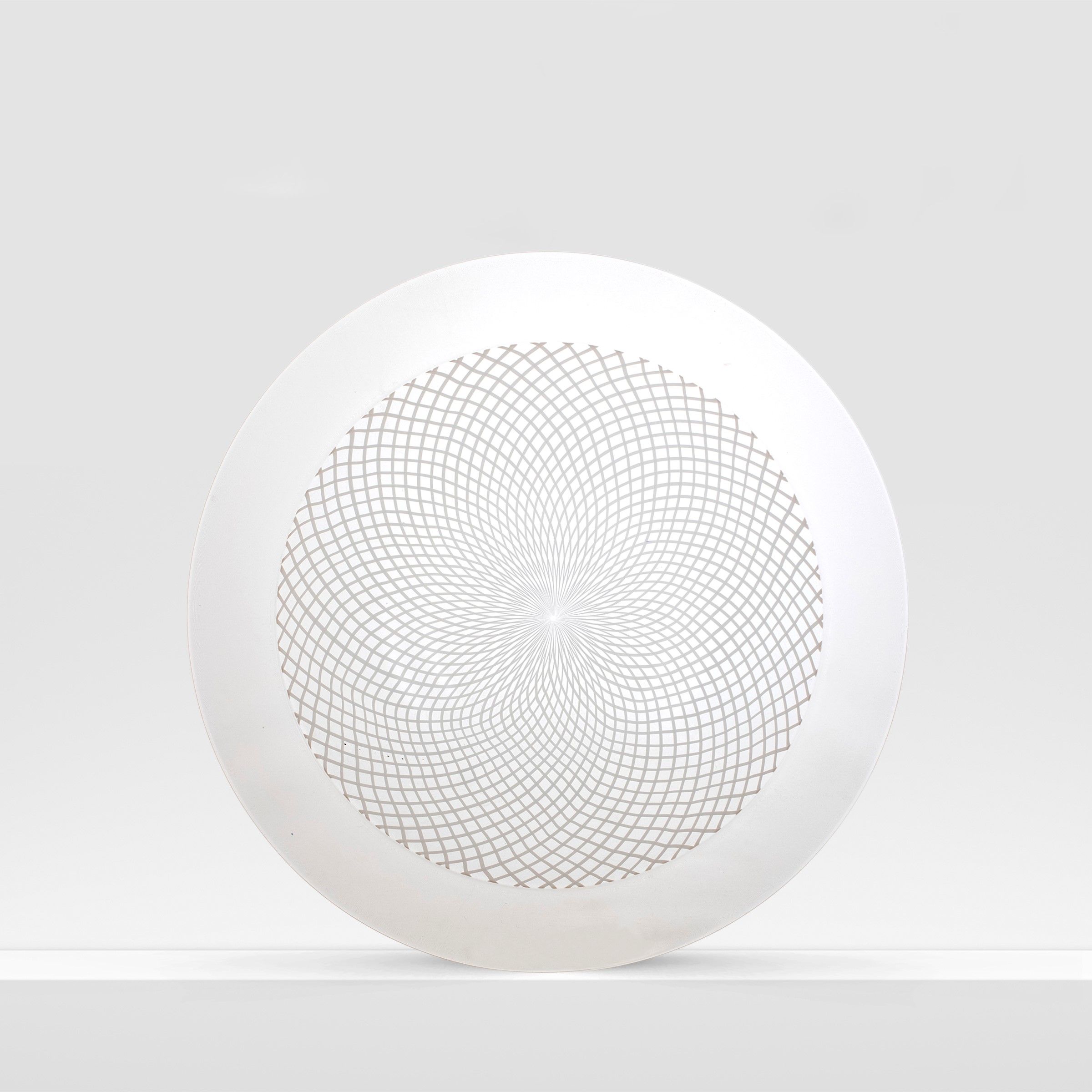 Murano, anni 80 grande piatto in vetro trasparente a reticello