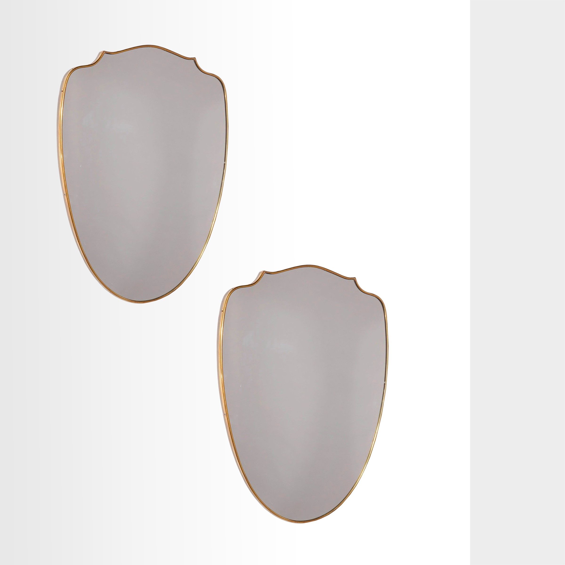 anni 50 coppia di specchi in vetro specchiato ed ottone
