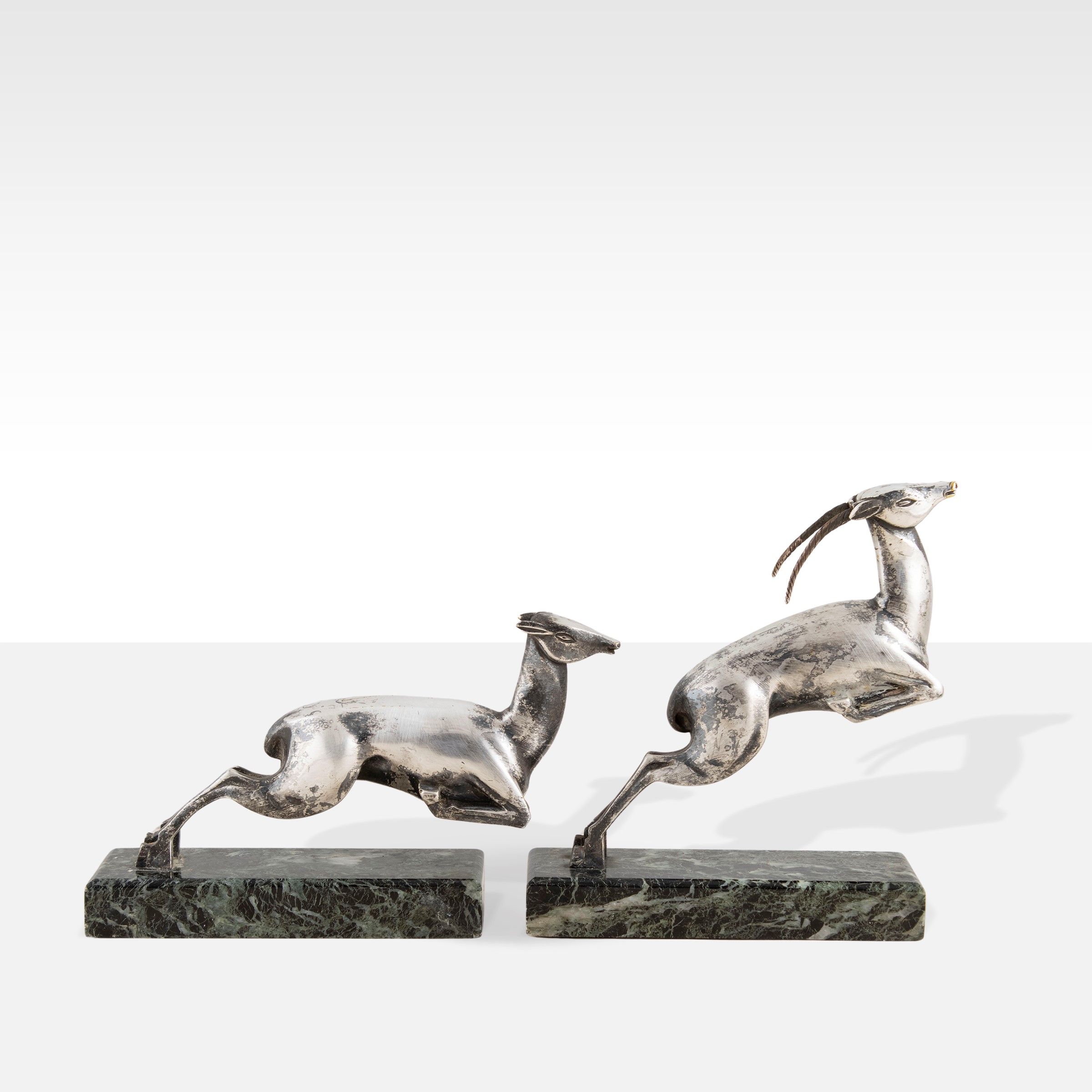 anni 30-40 coppia di fermalibri in marmo e metallo argentato, lievi difetti